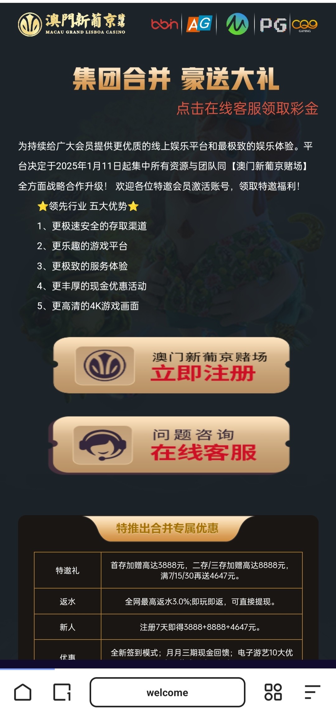 无意间跳转发现的,4647pg.com,要走这个合并链接里面注册,绑定银行卡联系在线客服申请合并注册彩金,送58,200提现,我申请了四个号,没打出来,老哥们看你们的了