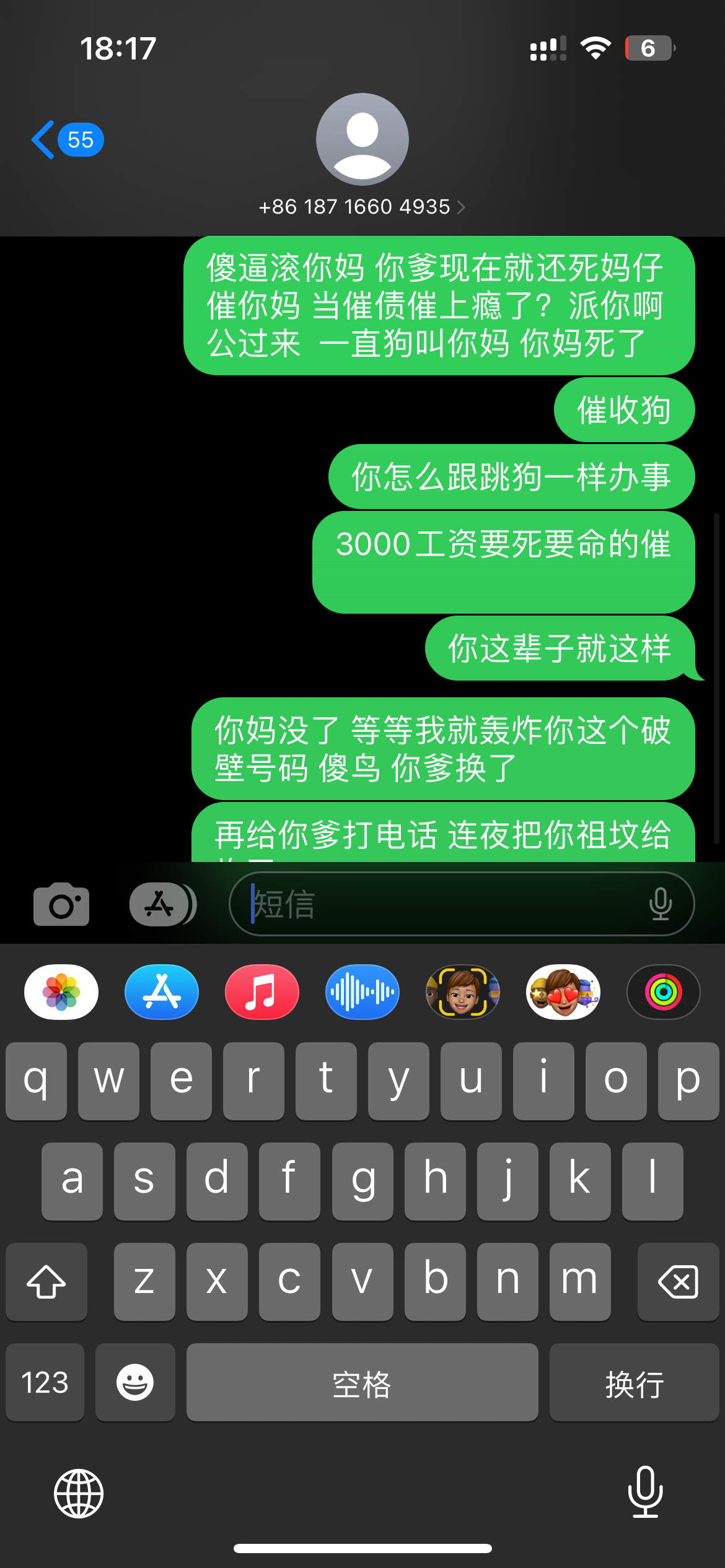 没钱还或者不还就啥都不用管!无论电话信息微信全部无视就可以!你一旦给他点回应他马上来劲了,无视一切最多偶尔来骚扰一下,我之前天天收到那个狗催用手机发短信那傻逼起码坚持了一个月现在没踪影了!