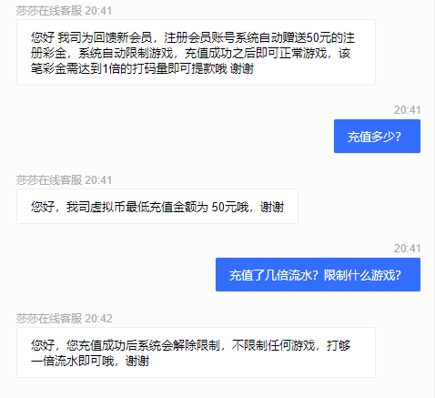问客服说最低充50才能游戏,这个网有人玩过吗,黑不黑