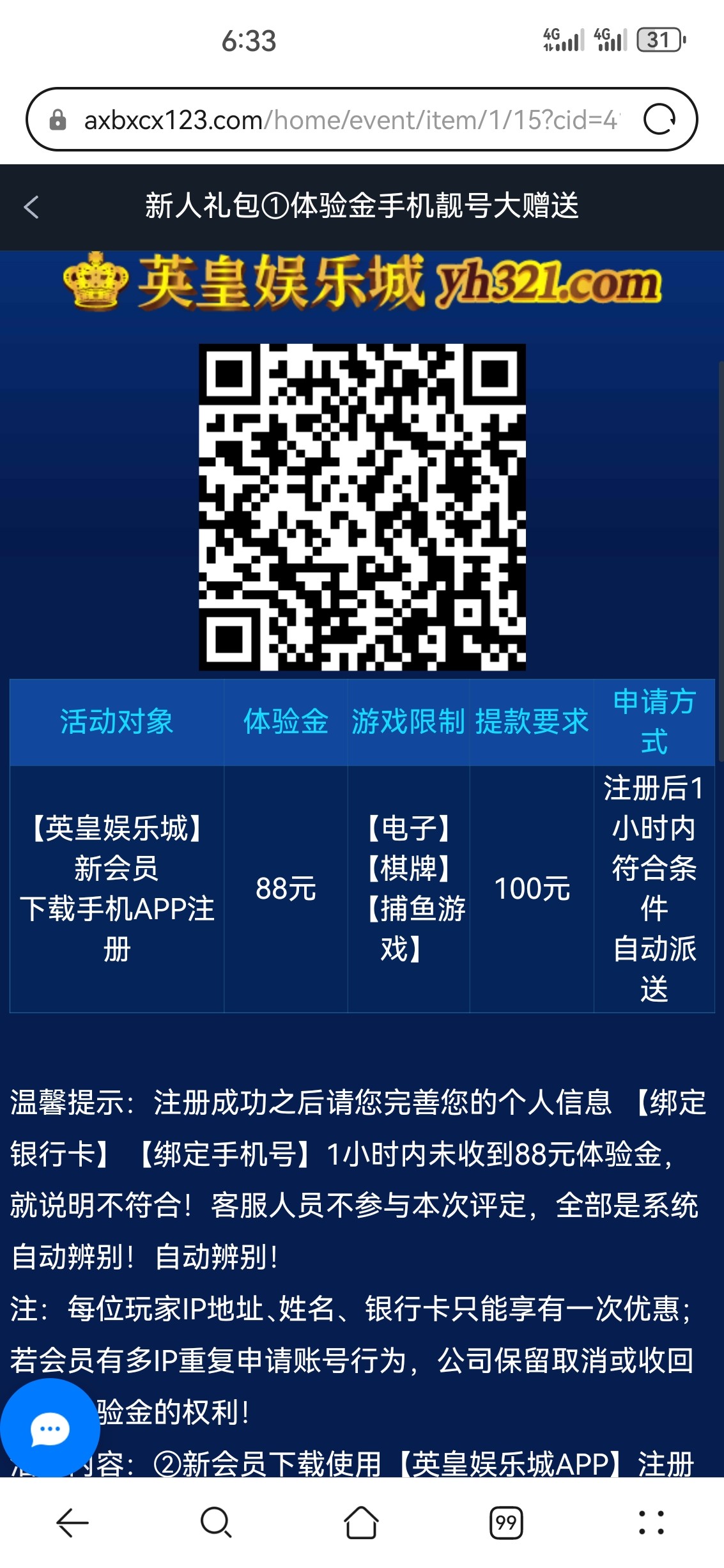 有个毛线,前段时间发信息来了,注册绑定银行卡,结果是充值送