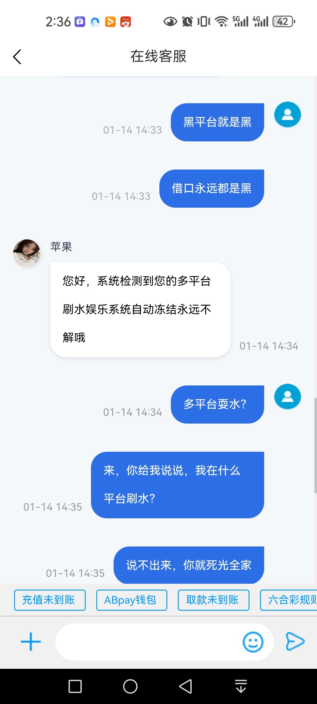 我是昨晚在网站上看到这个平台注册的(之前从没见过这个台子),注册好充值100说送48,结果客服直接说我什么多账号等,说我套利,不送没办法就自己去玩棋牌,第二天提现318就被冻结账号,找客服就说我多平台刷水,真无语…大家千万不要再去跳坑了