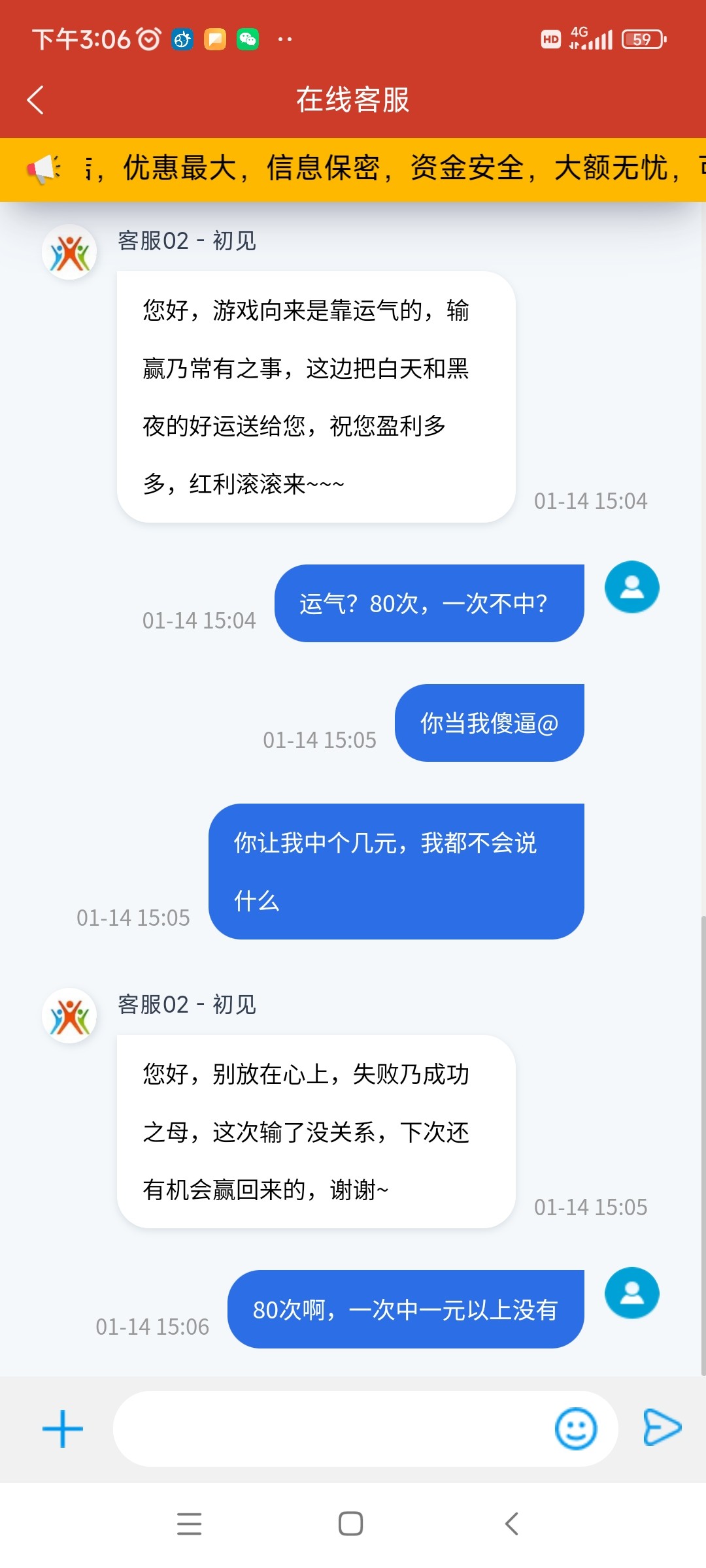 500跟5000的我抽运气都不太好,5000是八块或者空,500是五次空4次,给过一个3一个5,50我之前抽,再运气不好,十次平均有2-3次一块的,大概就这样,从那以后就抽的50了,算下来划算,毕竟我也不指望后面两个能转几百的给我,但这个月的,抽奖全是谢谢参与,一个没有。。。。。