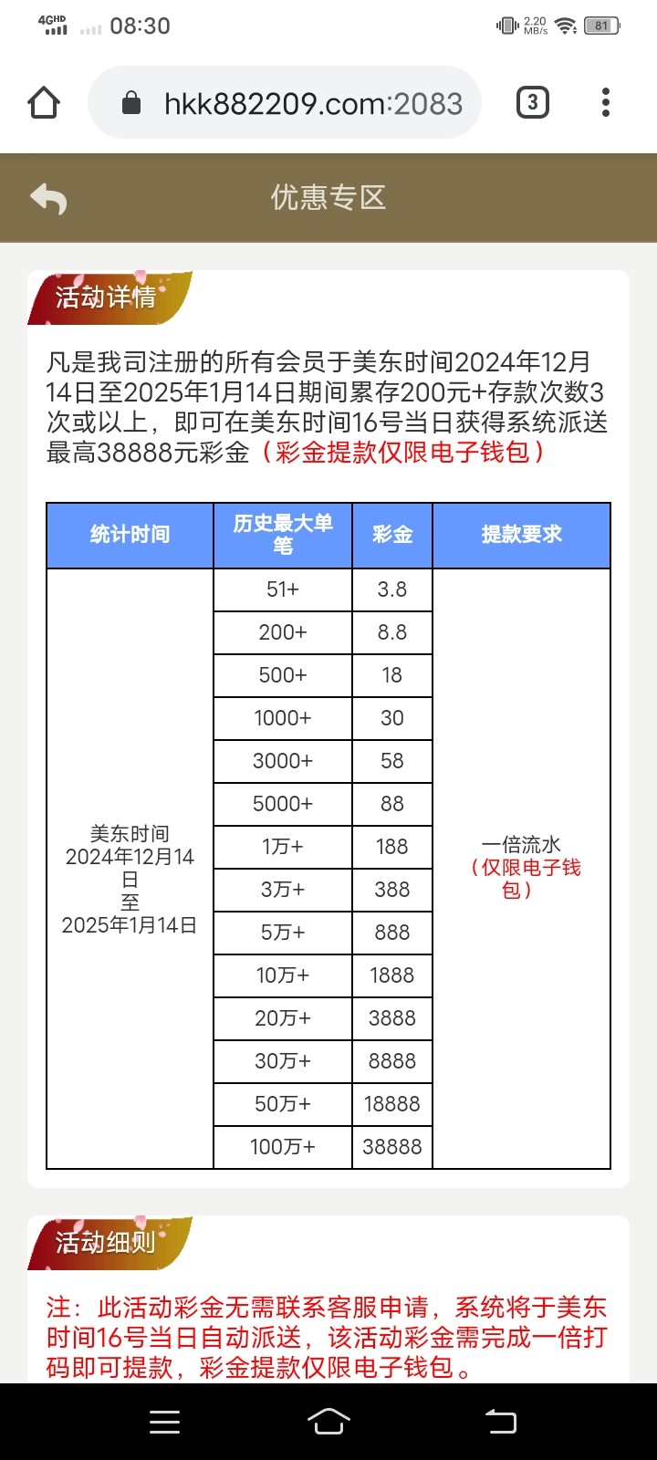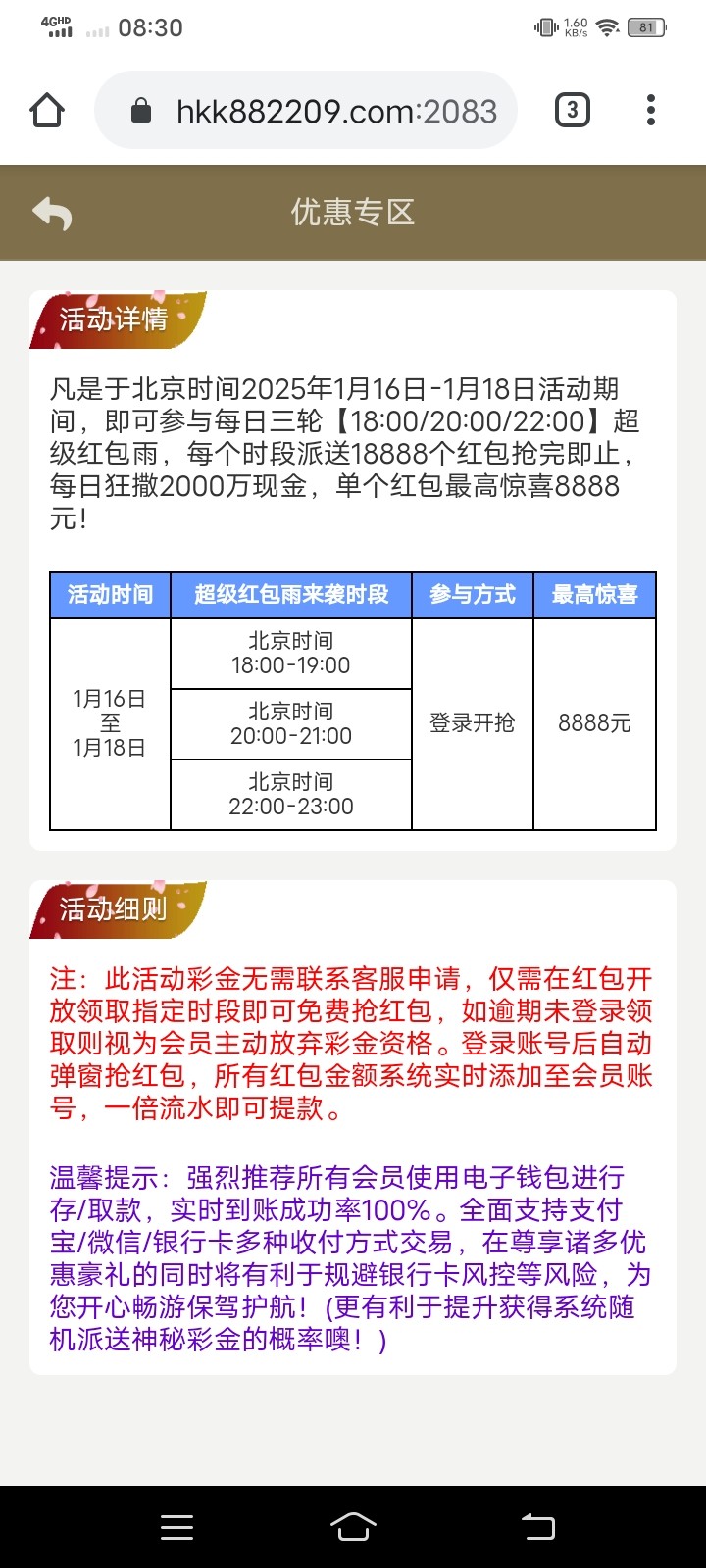 老哥们符合要求的记得今天中午12点登录去领取,还有超级红包雨,8822.com,好久没发帖子了,哪里有错的还请判官哥指点下,辛苦哥哥了