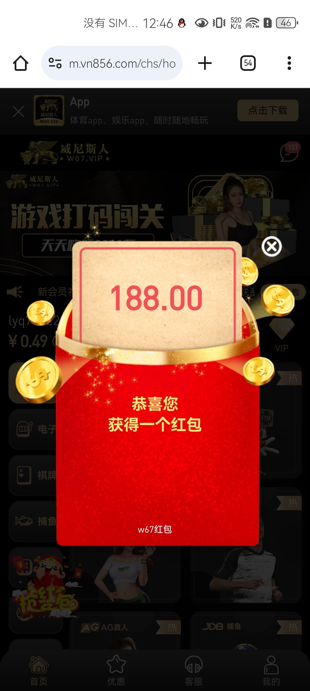 打电话送了188回访彩金 提了600 登录就有的 找客服没用 可以去碰一碰 网址w67.vip