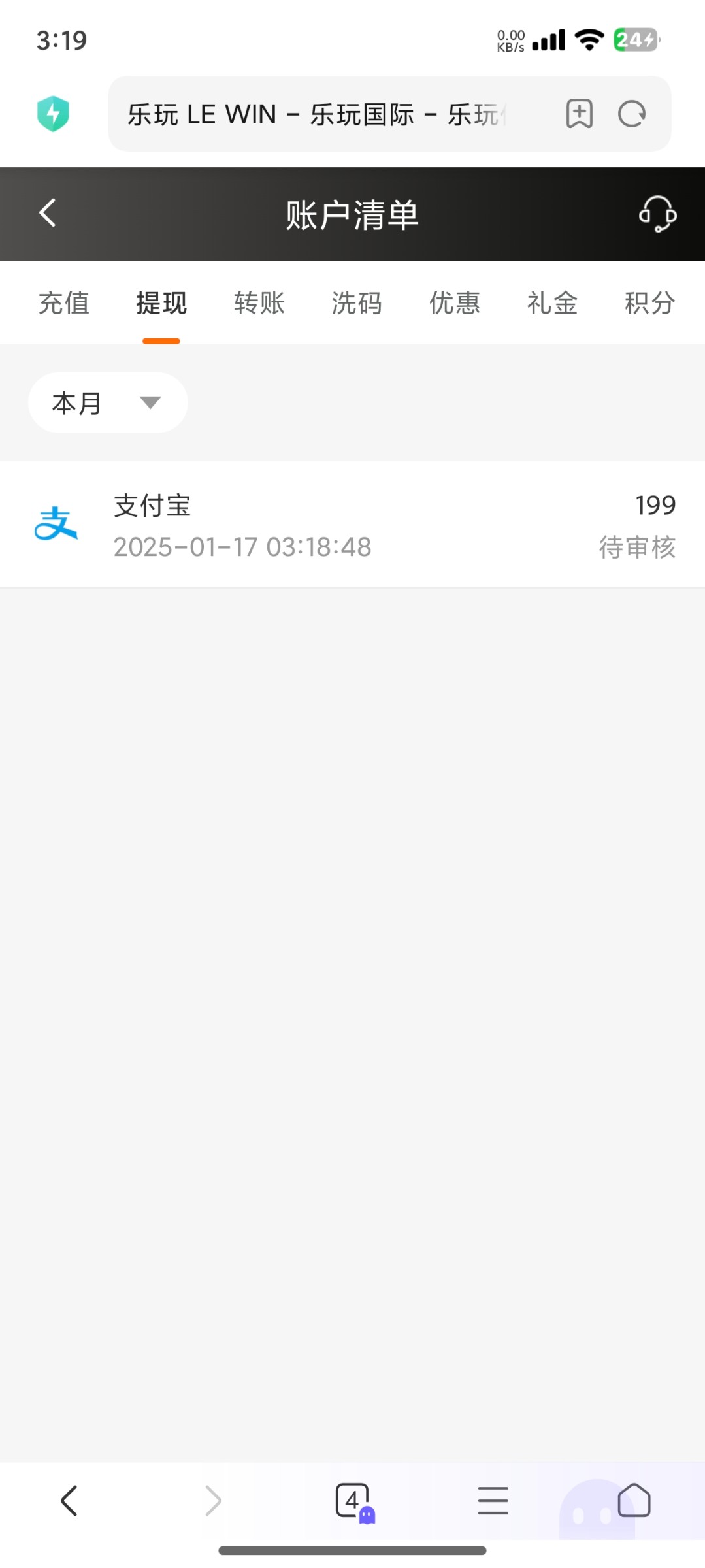 200多中午三点提到现在才到账,出款真是太慢了。