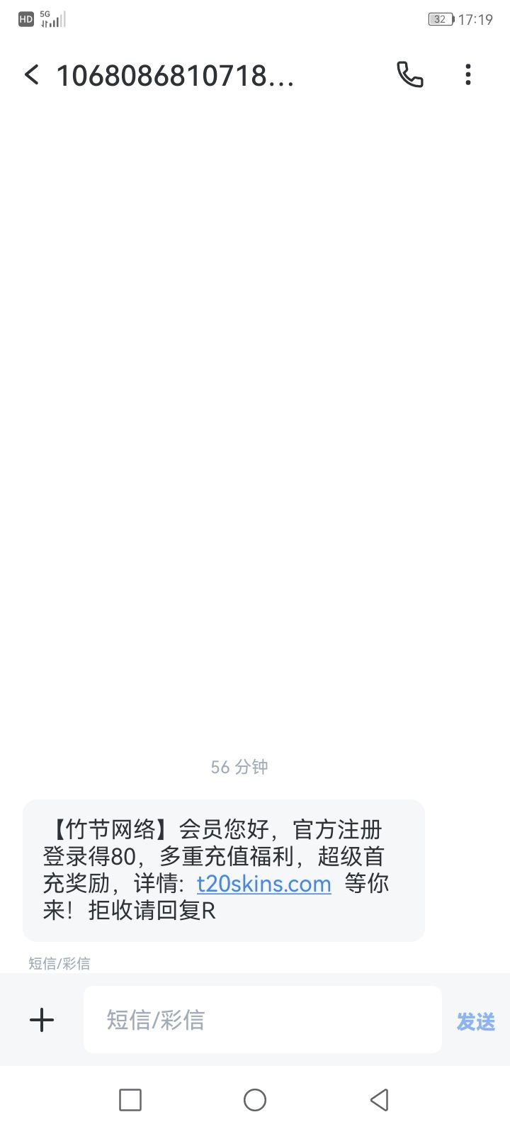 【竹节网络】会员您好,官方注册登录得80,多重充值福利,超级首充奖励,详情: t20skins.com 等你来!拒收请回复R