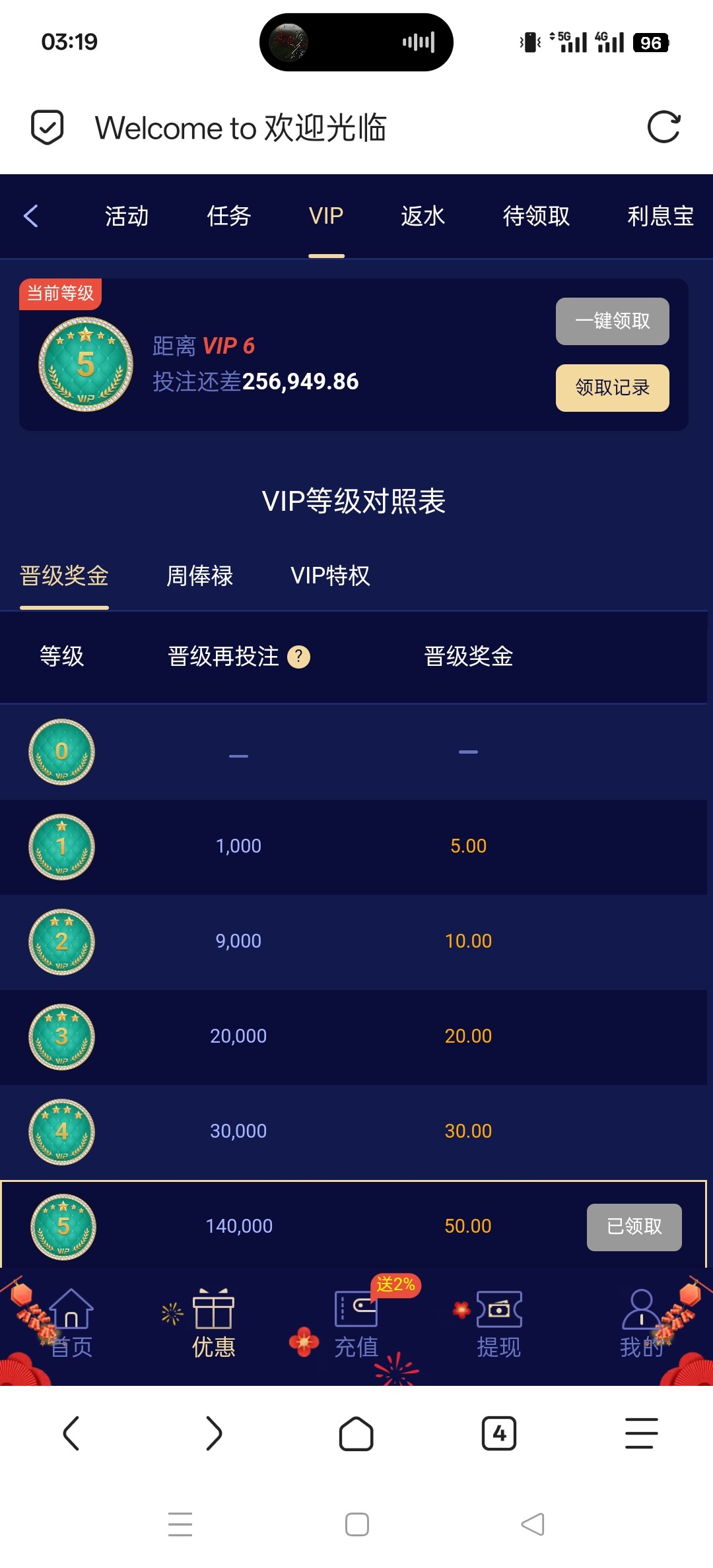 领了5块vip彩金几分钟出了250