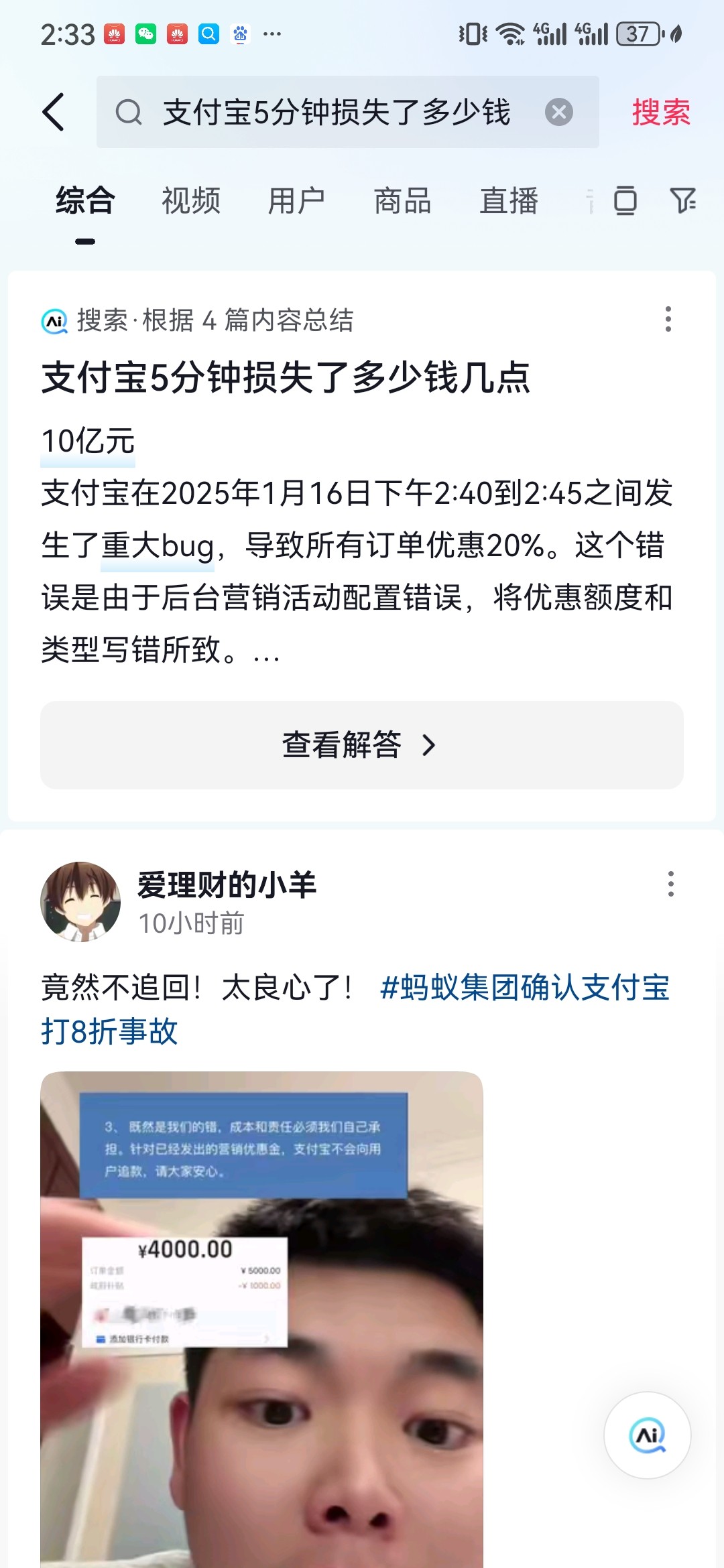 昨天的两点40分到45分,支付宝有个p0级别的bug就是转账消费支付啥的通通打八折。意思就是朋友转五千,相当于只给你转四千,然后白嫖一千,然后五分钟内一直互转能赚很多,有没有老哥撸到了,听说支付宝亏了十亿,还不追剧责任