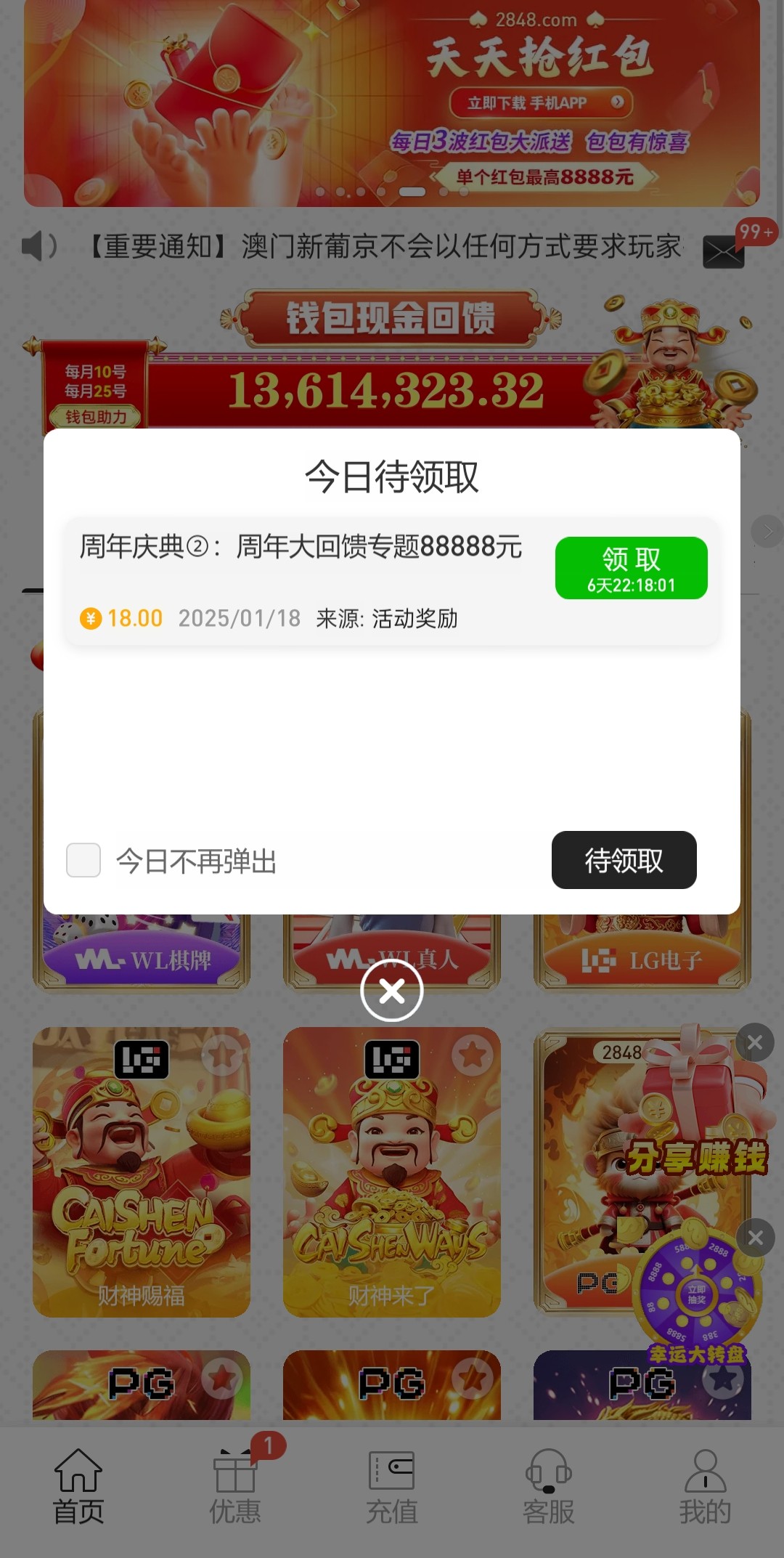 之前充值过100。领了28打到200多没提,直接吃下来了
