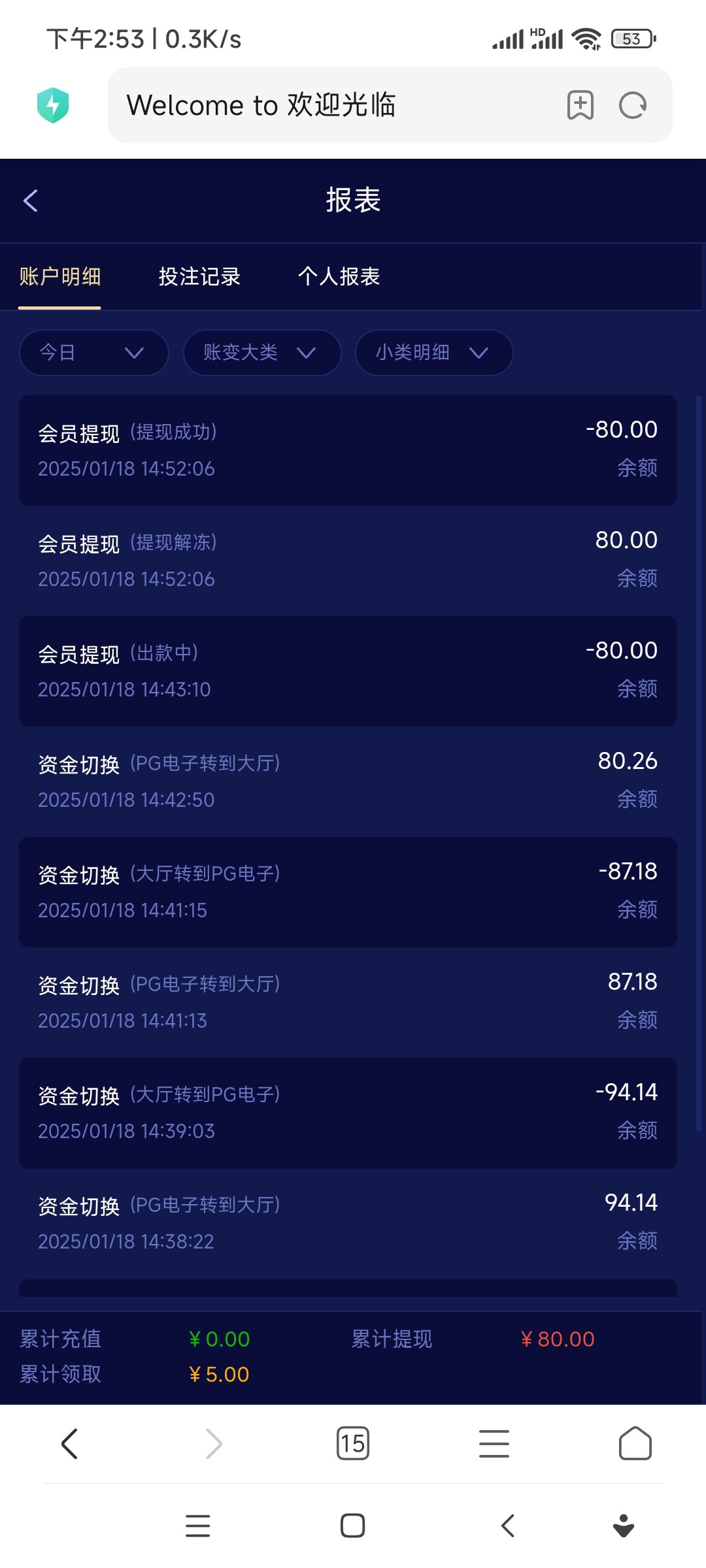 以前领取过老哥代码没打出来,大约就打码十块钱升级到vip2吧,今天偶尔上去看看有个待领取vip奖励5块钱,上去拉了五下四毛麻将打到100了,换游戏也是一直吃到80怕洗白就提了,没想到提现给出了,本人一分钱没充值过,链接053.com