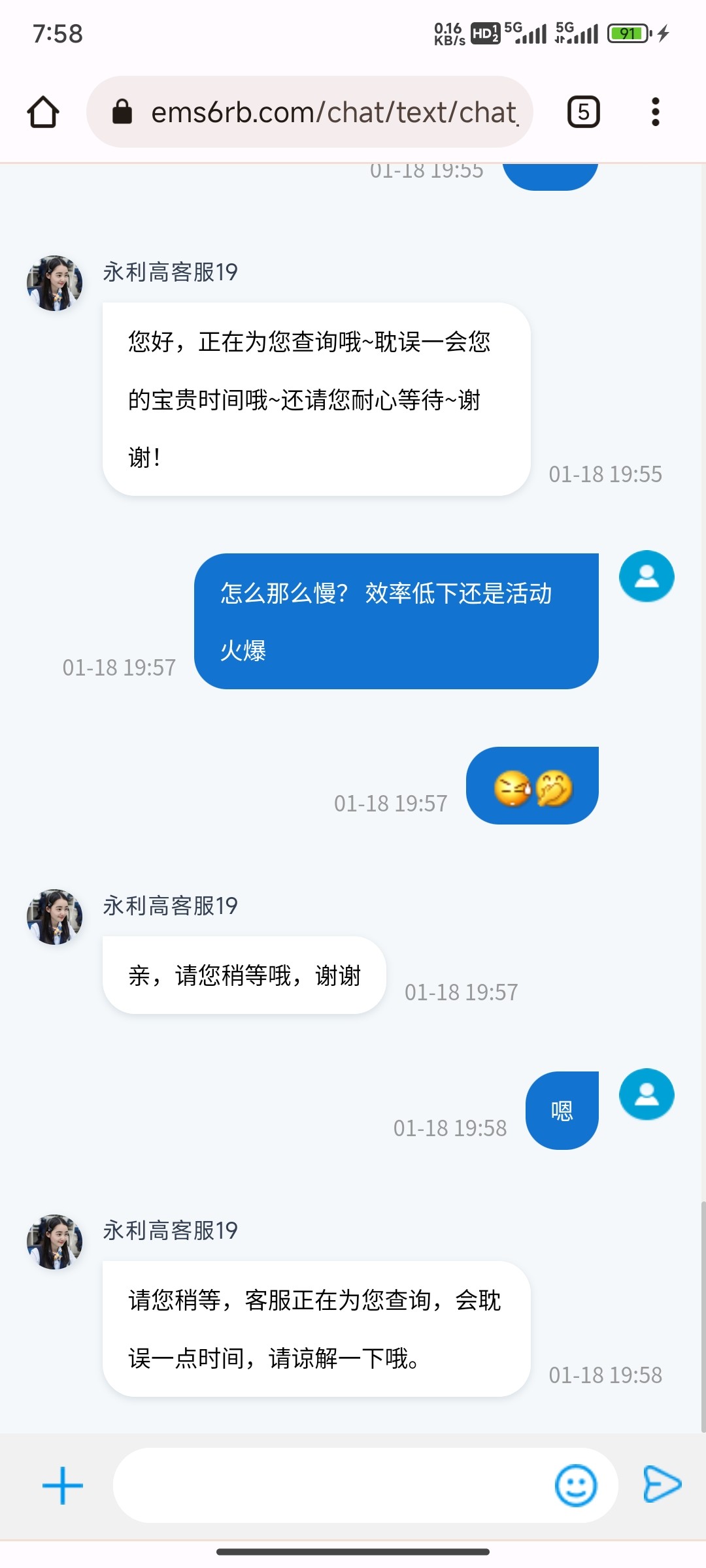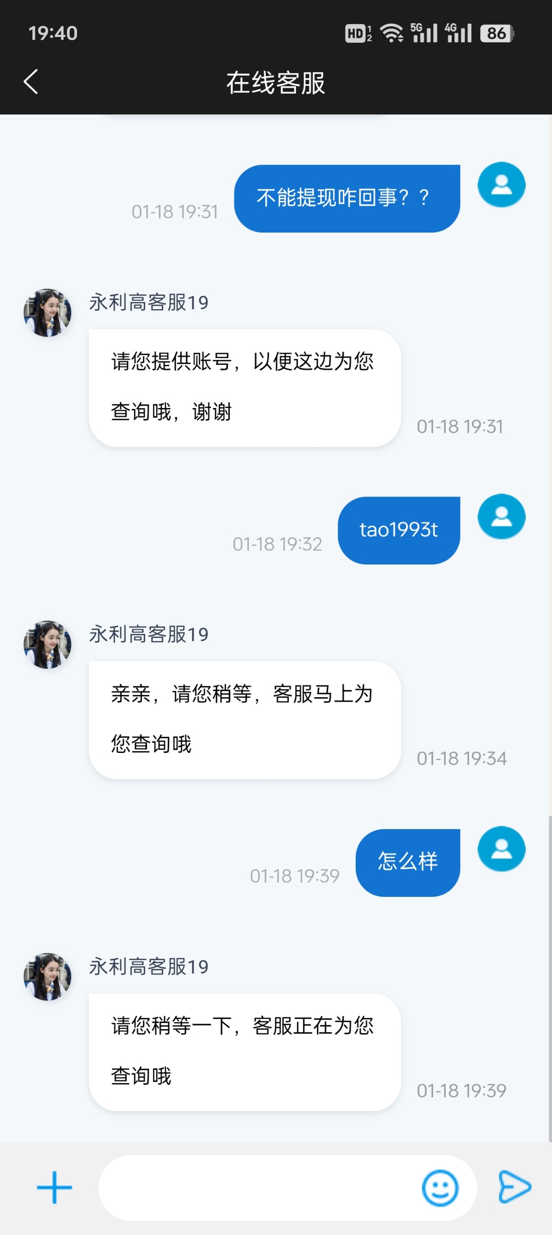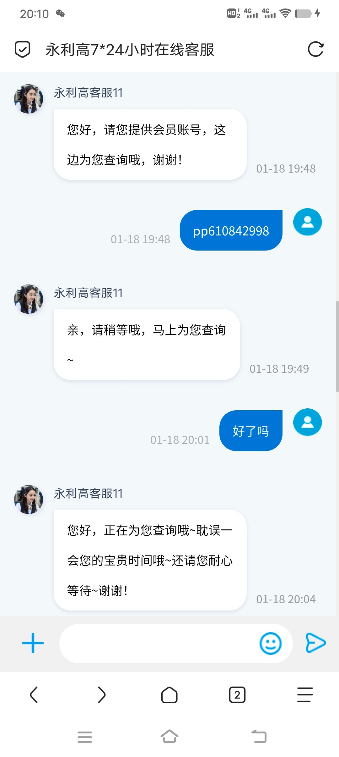 傻逼客服半天憋不出一个屁问就是稍等