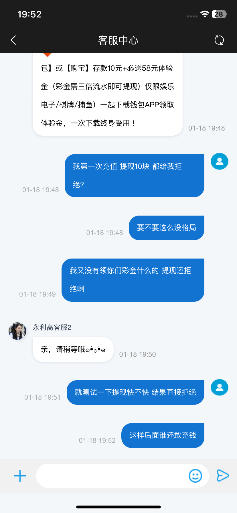 我充值 没领彩金 提10块钱 都拒绝