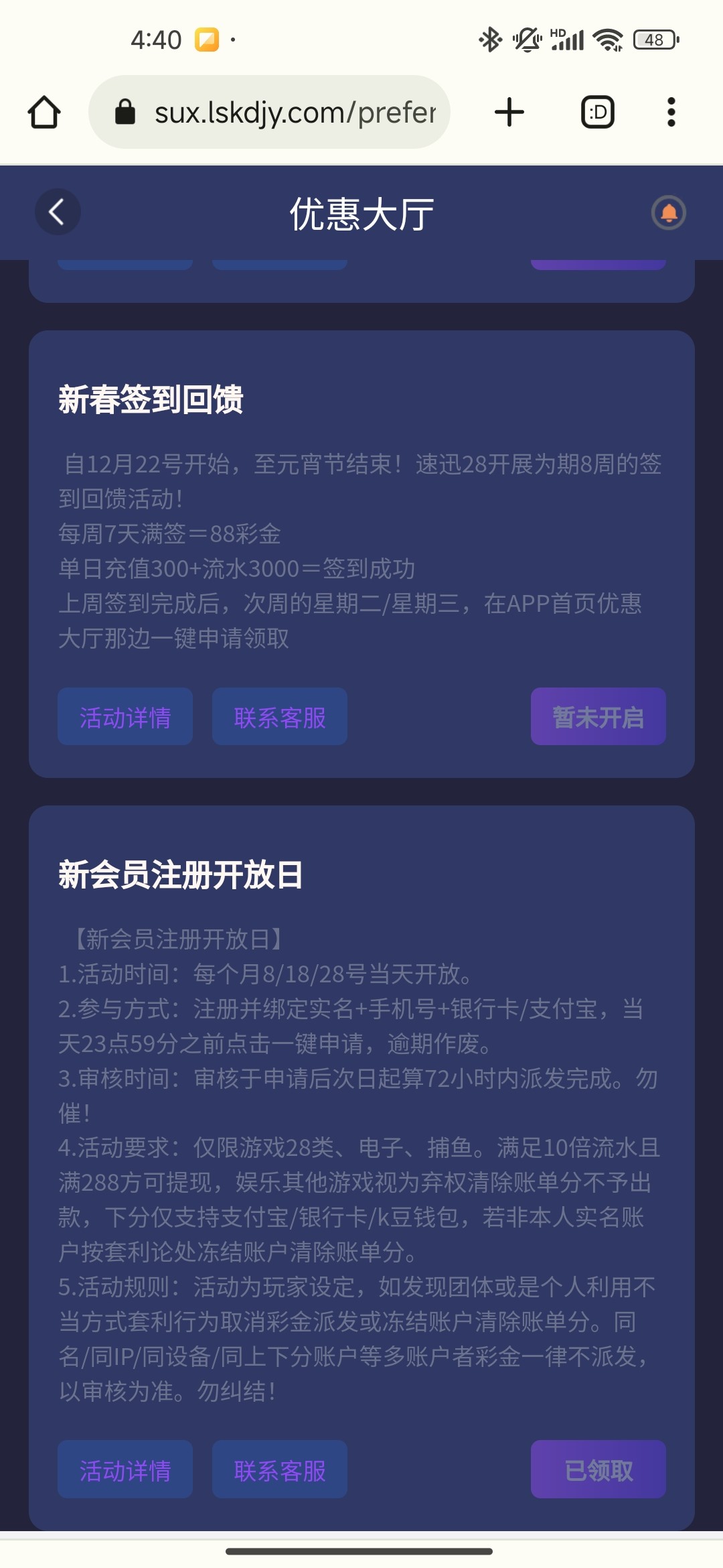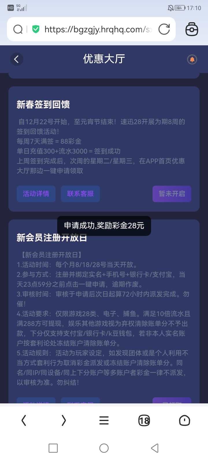 每个月8 18 28号注册 当天绑定好手机号提款方式 大厅申请 活动规则自己看 最低288提款 地址 sux88.top