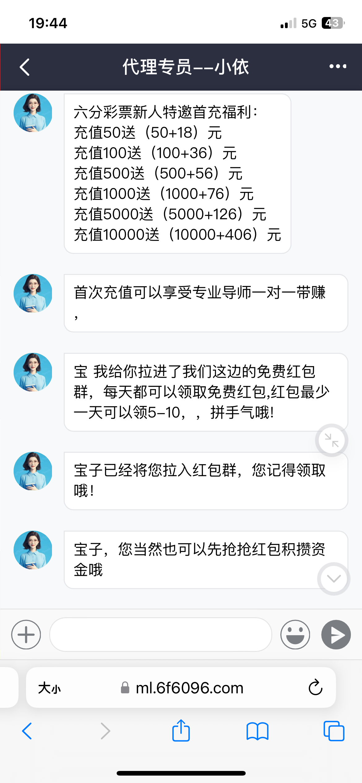 我收到短信去的,注册好了之后好像自动就给你拉进这个红包群了,每天可以抢五到十块钱,老哥们自己去试试吧https://ml.6f6096.com:8760/userCenter/manageIcode