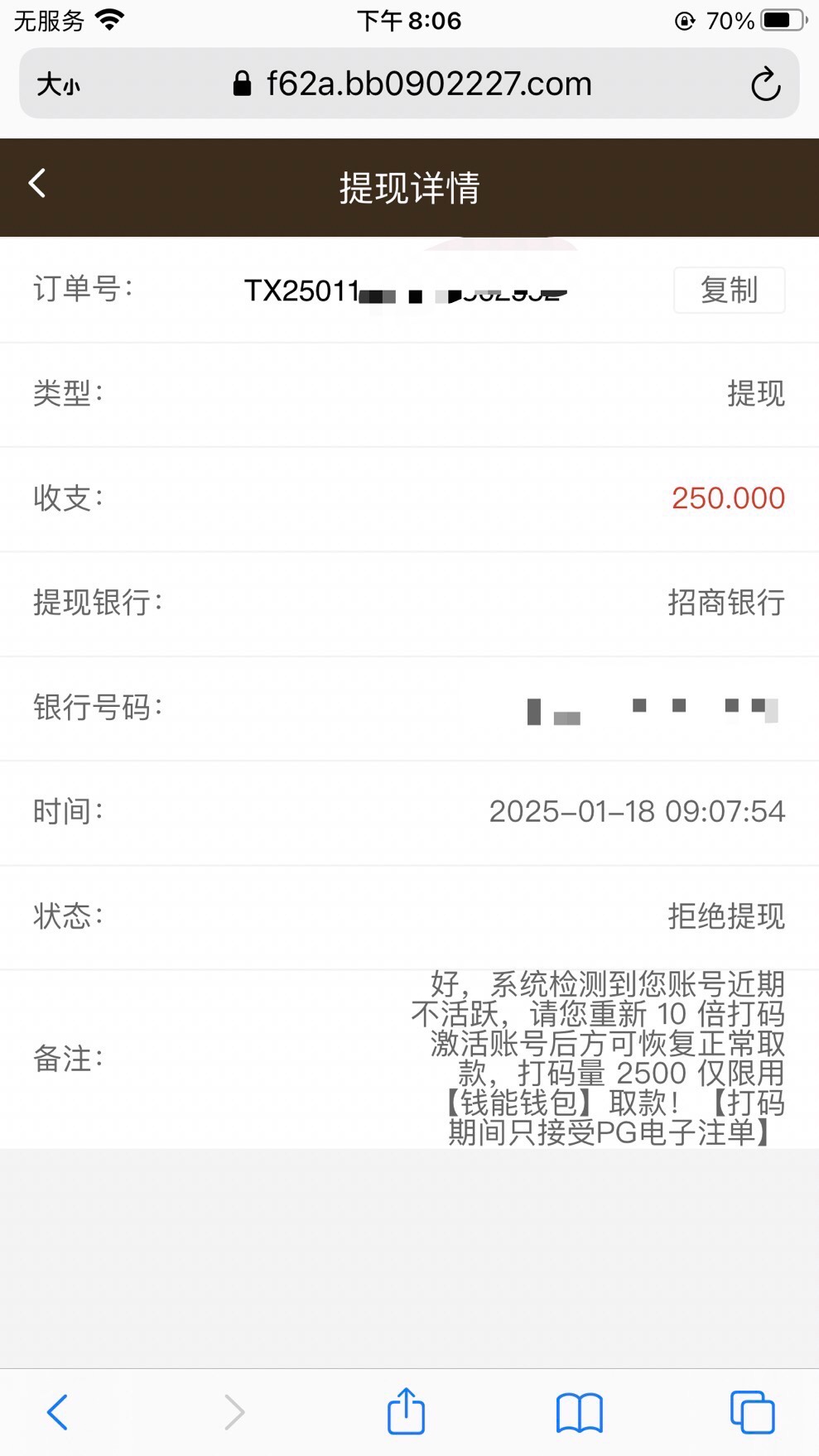 227这狗台我玩2年多了就刚注册那会提2000罚水5倍输完了后面提现都是秒到账