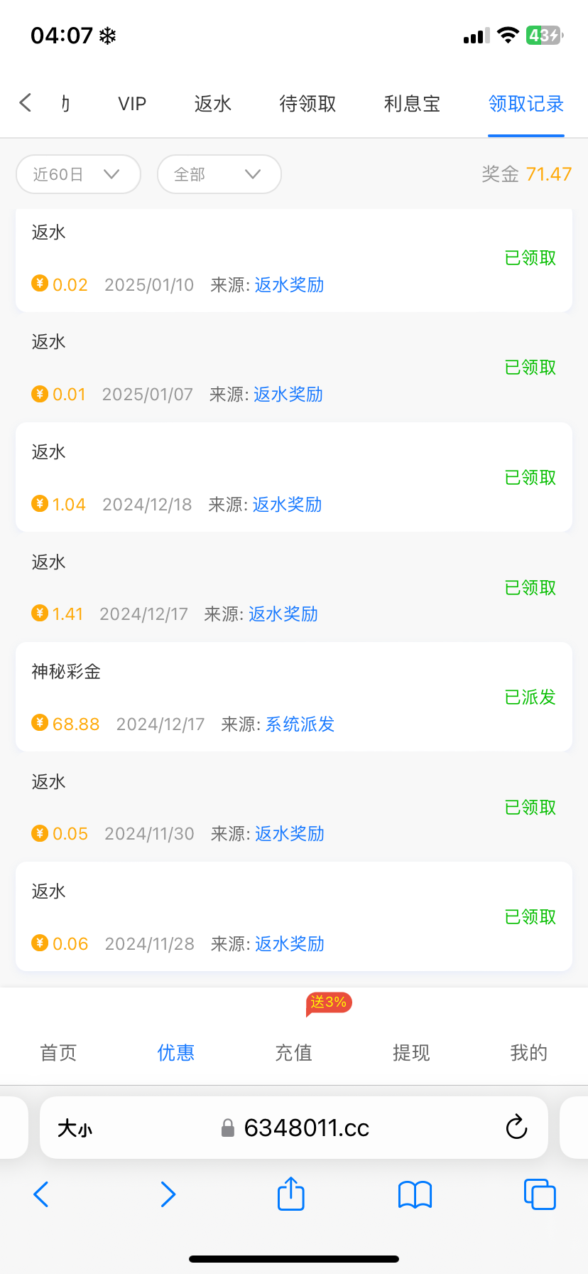 收到的按照提示操作去申请就行了金额都是随机玩的越多彩金越多我几个月没玩了上个月给了68今天的还没申请到不知道给多少