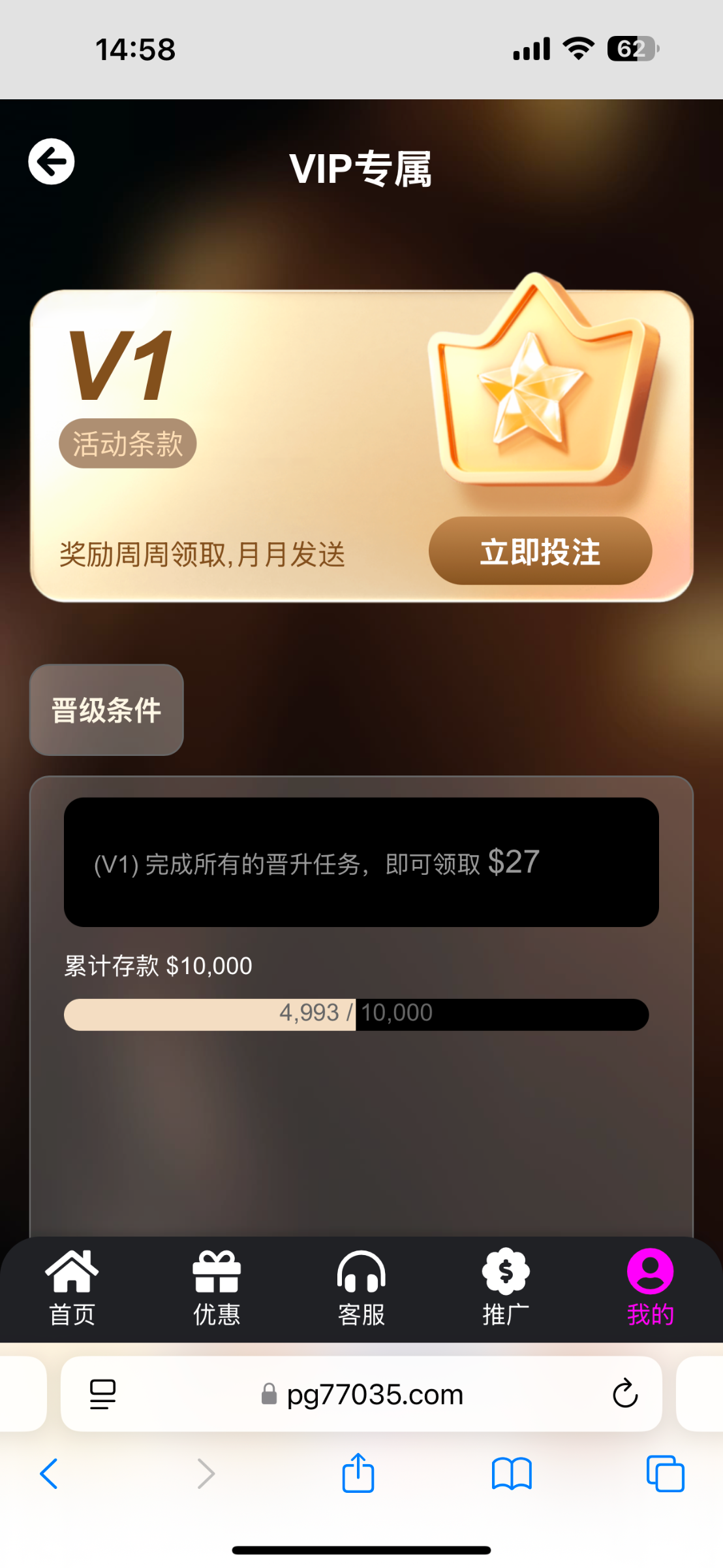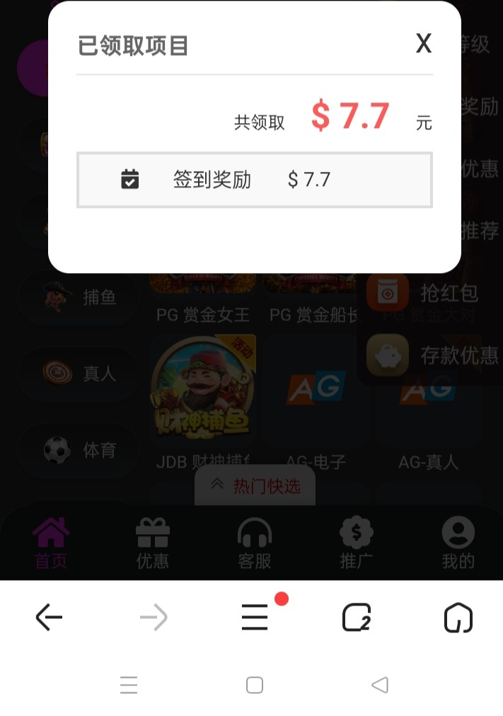 这个台子还是可以的充了一千出了两千多 就天天白嫖签到彩金十多天不充值打上100了也能出