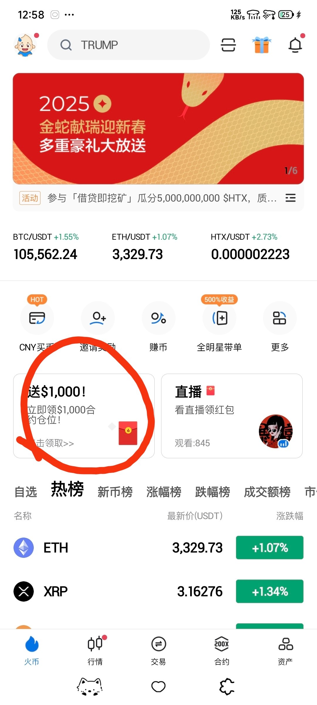 火币有软件的直接去首页那里就有这个活动,最高免费拿16U的体验金