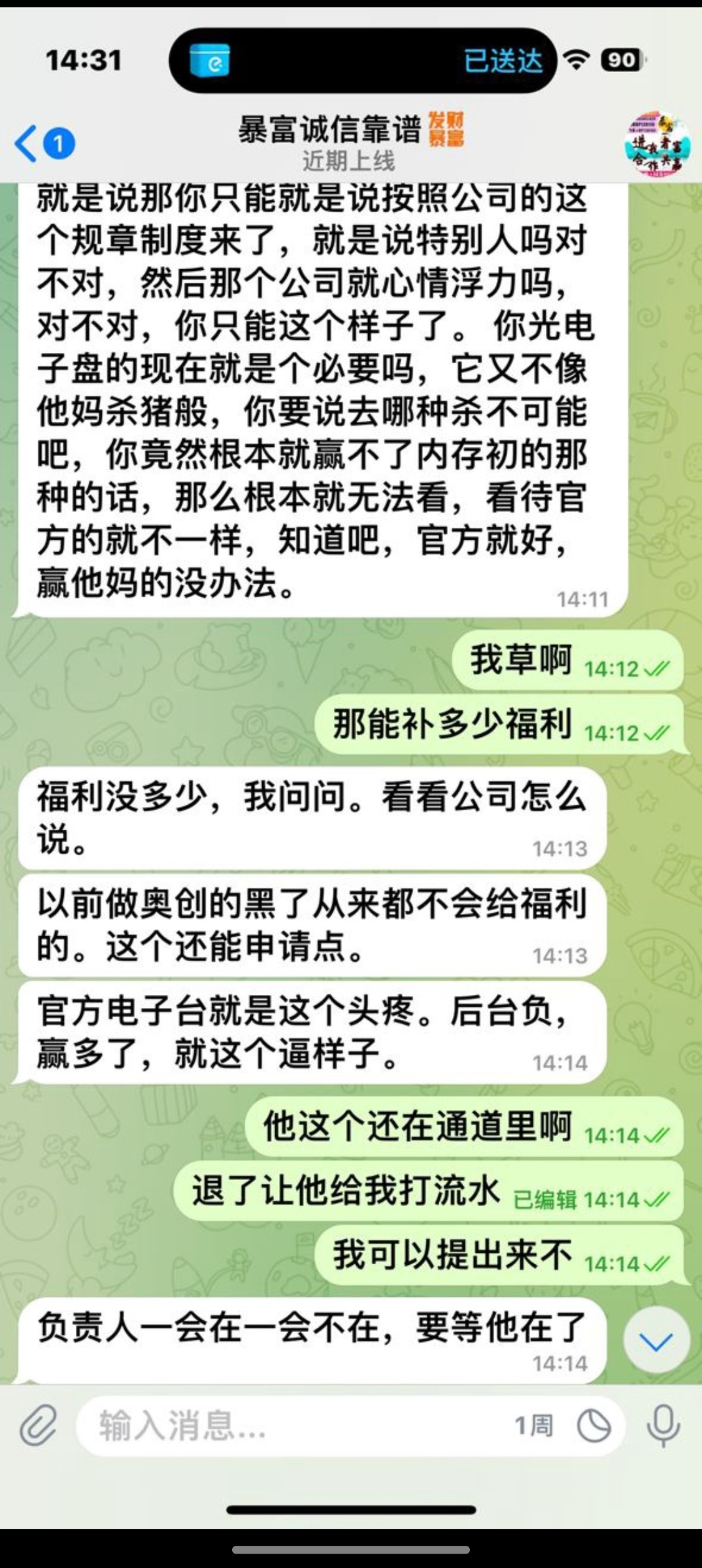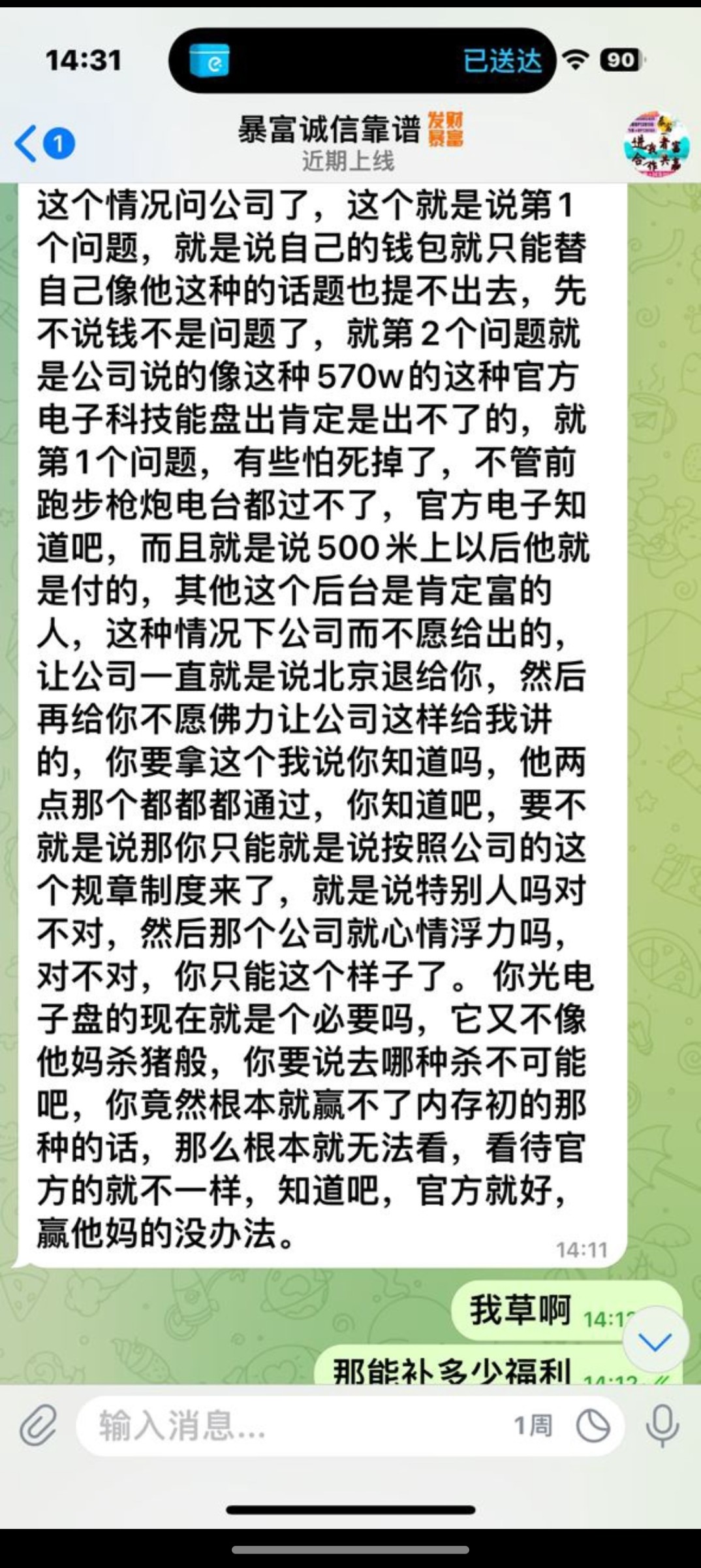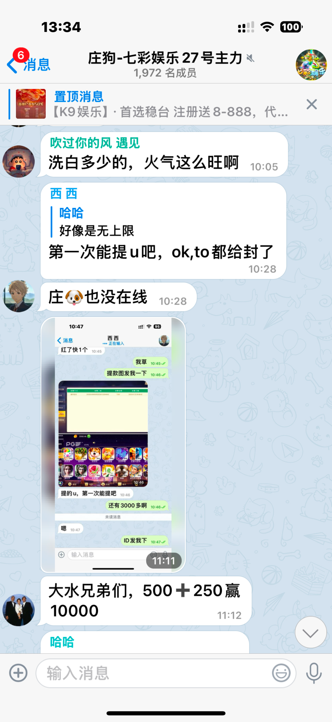 曝光一下跟圈内台一样的这个叫做博乐国际,我存500打的500+250活动,开始提现7k,一一直不到账,给我退回,我又继续打,打到1w,又提,又退回,然后我找上级,回复我说公司看我赢得太多了,不给出,直接要黑我,这种说是j6亏损盘,真踏马的出生这种