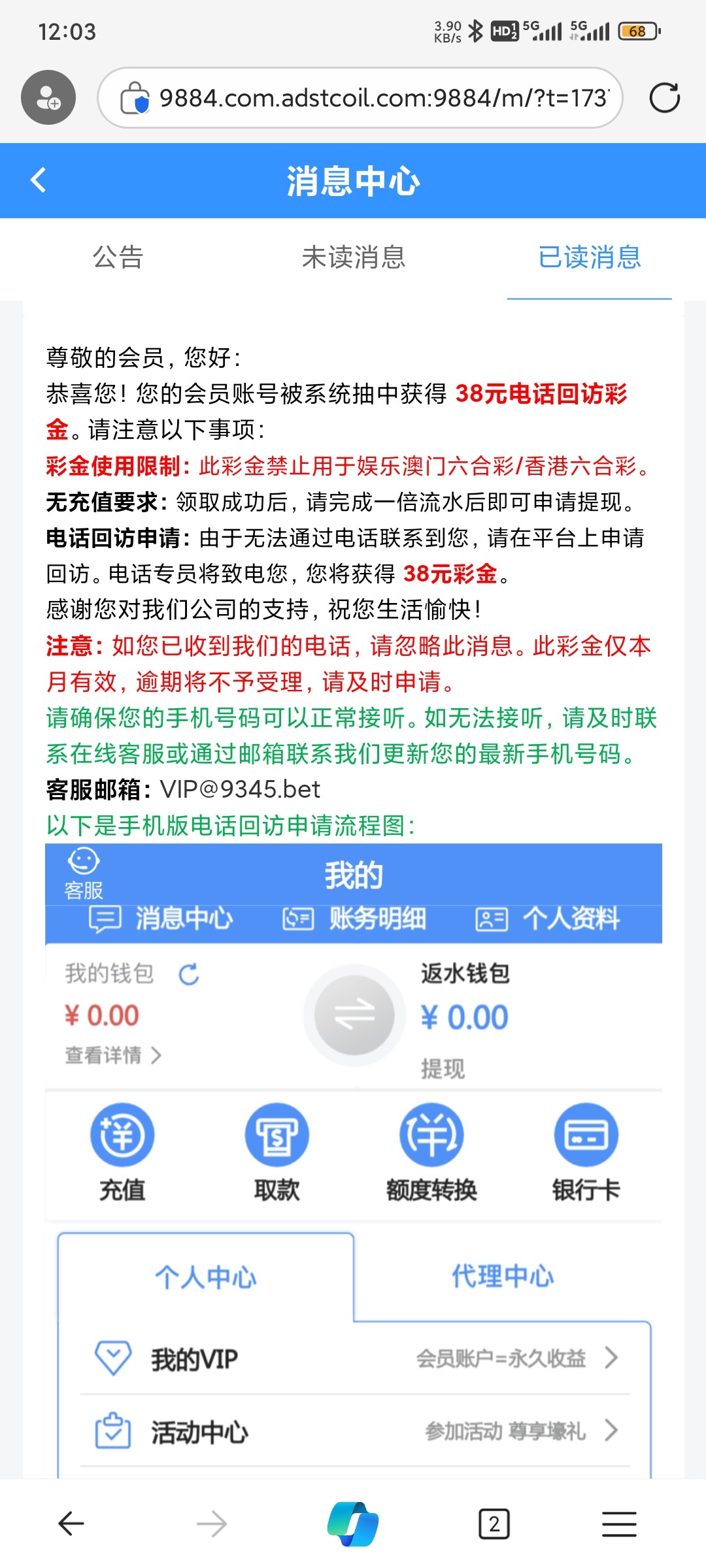 有漏接电话的登陆看看,会有这个站内信 地址 9884.com