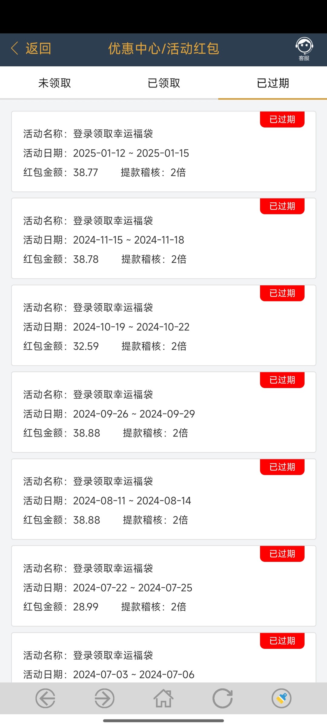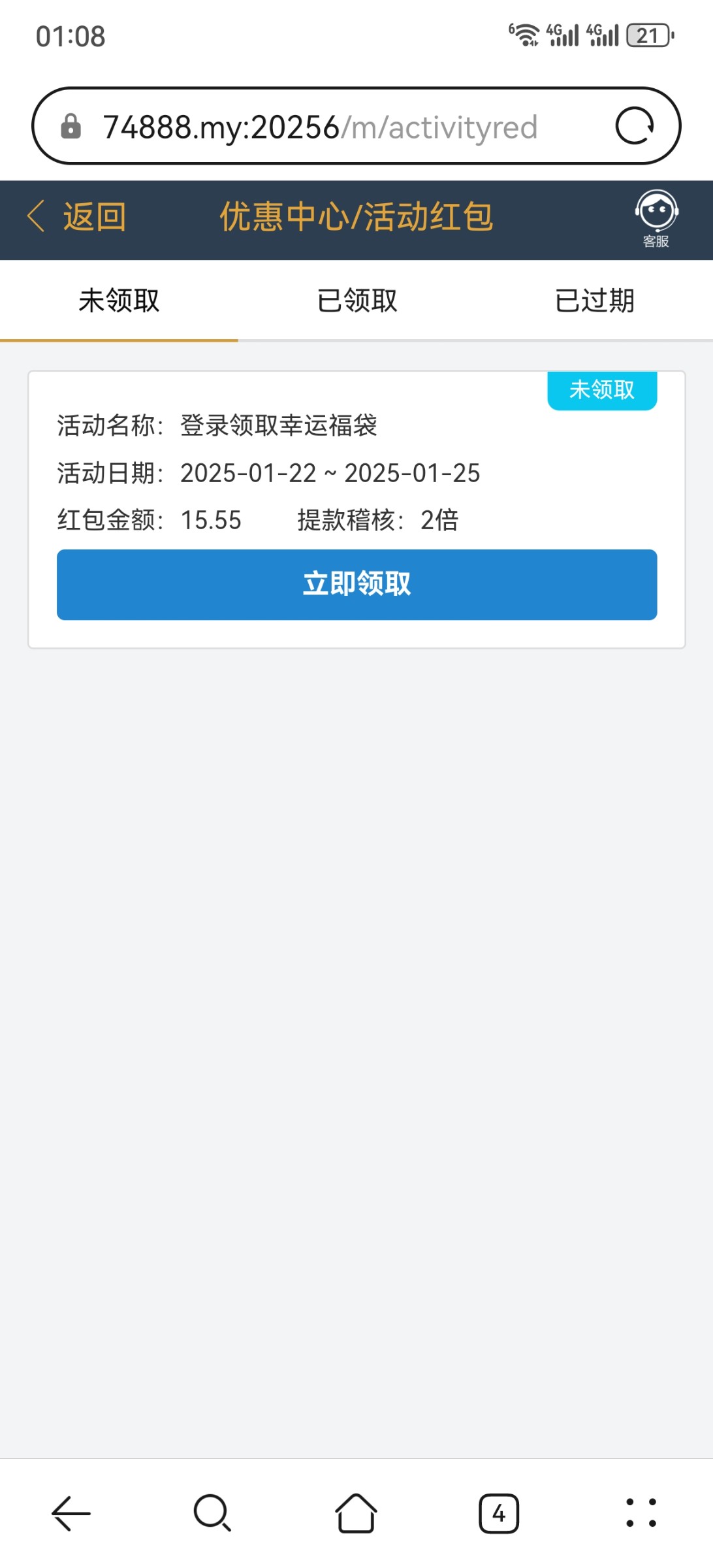不用去找客服,登录后,页面我的,活动红包位置,有就是有,没有就是没有