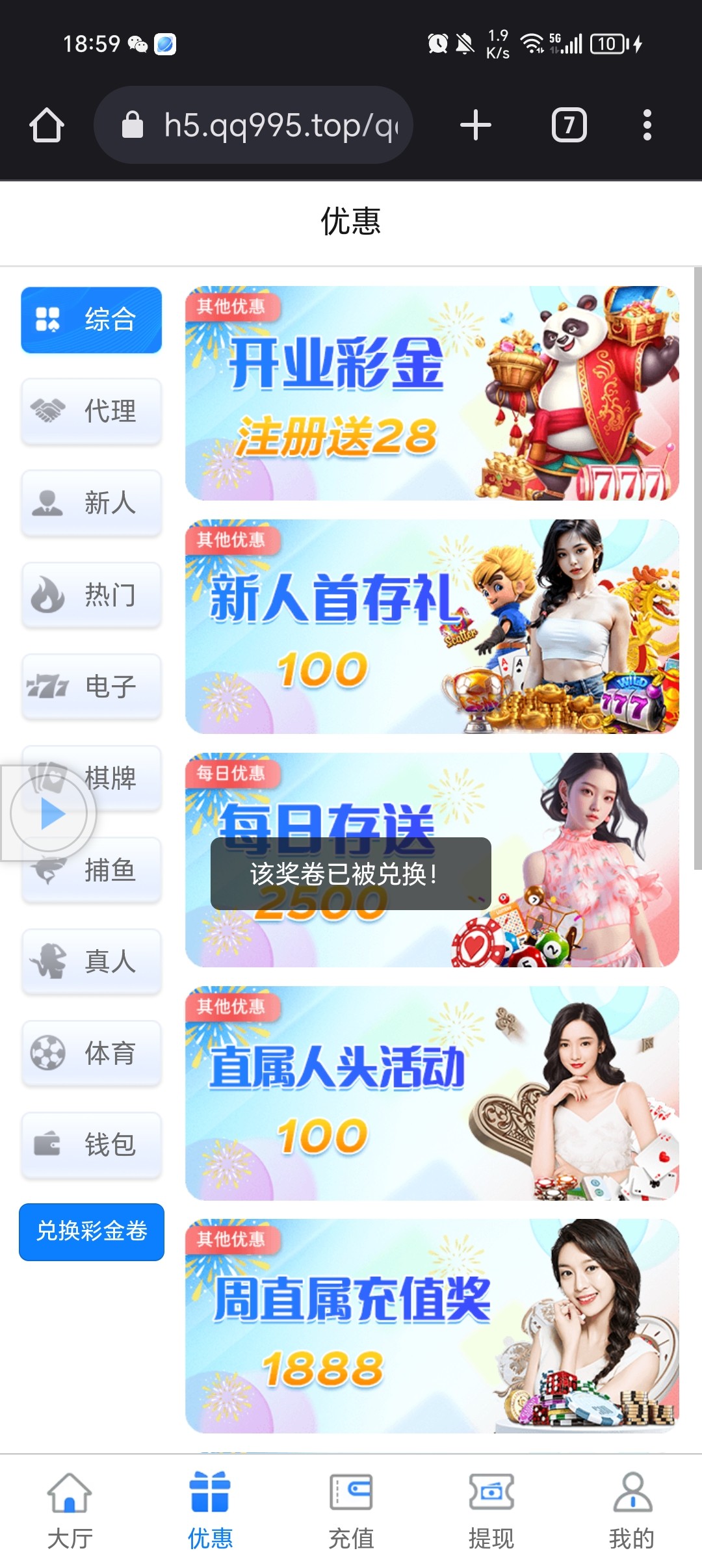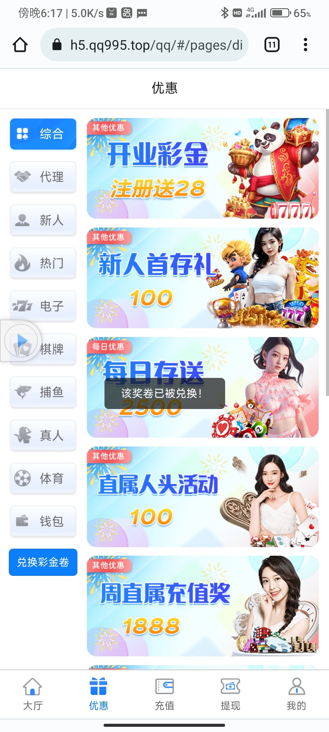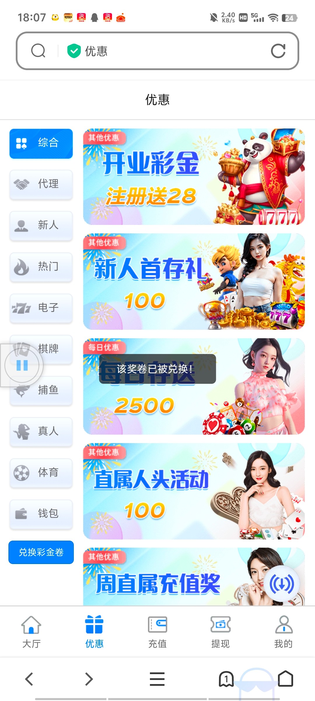 优惠活动-彩金兑换(同名、同ip设备只能一个账号领取)
