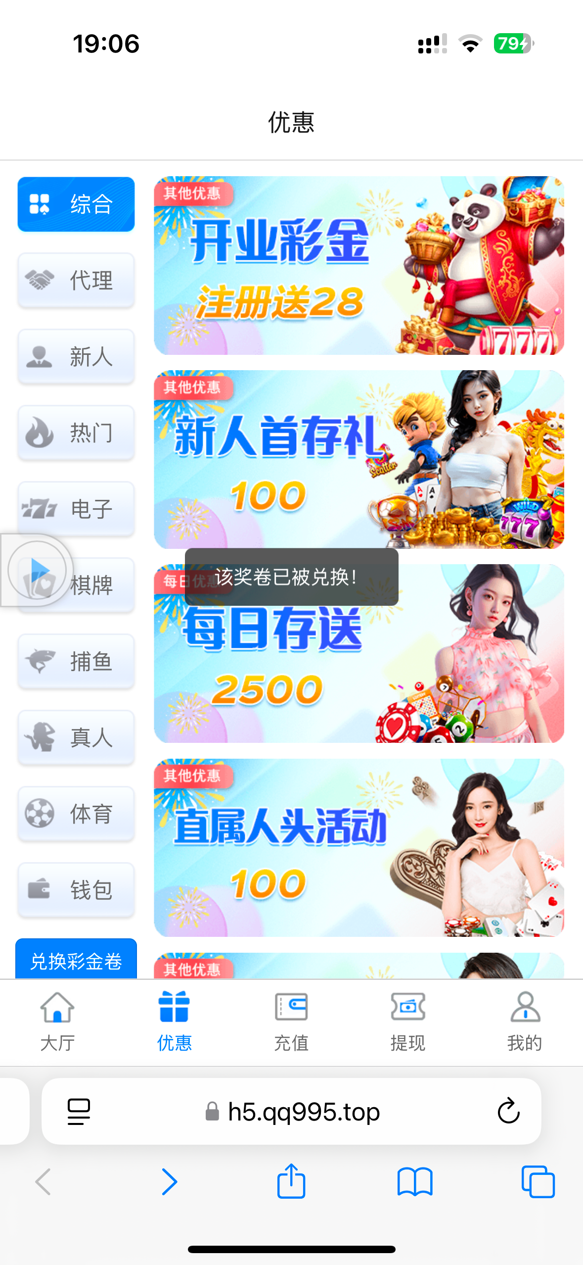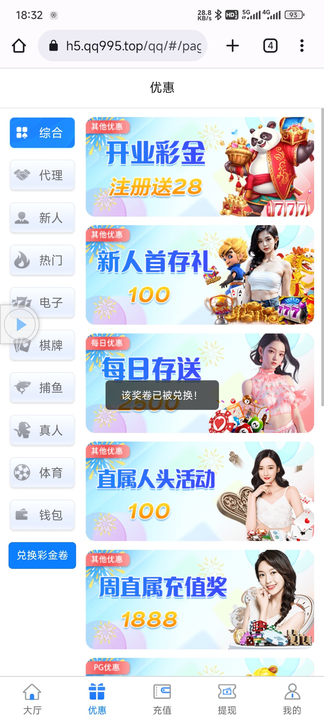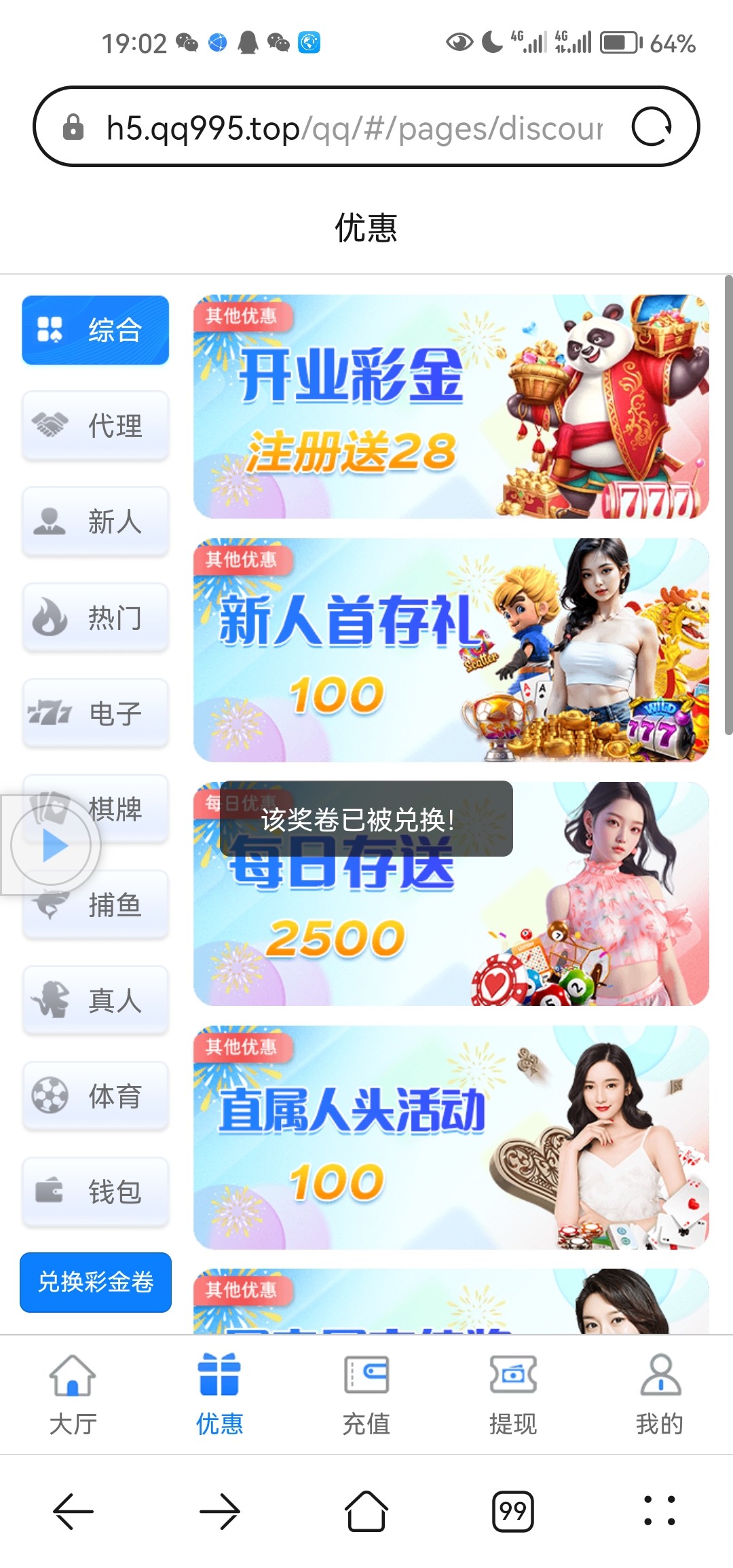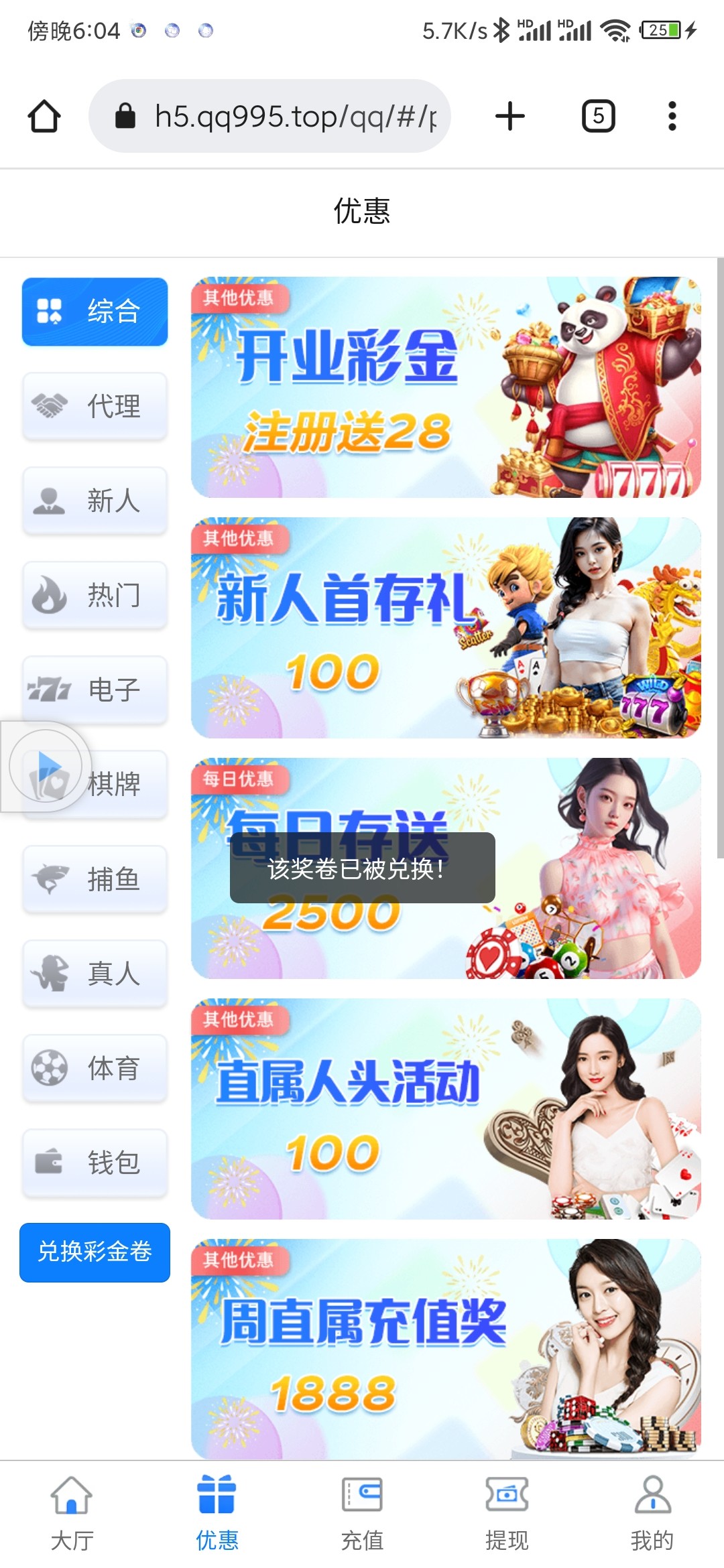 优惠活动-彩金兑换(同名、同ip设备只能一个账号领取)