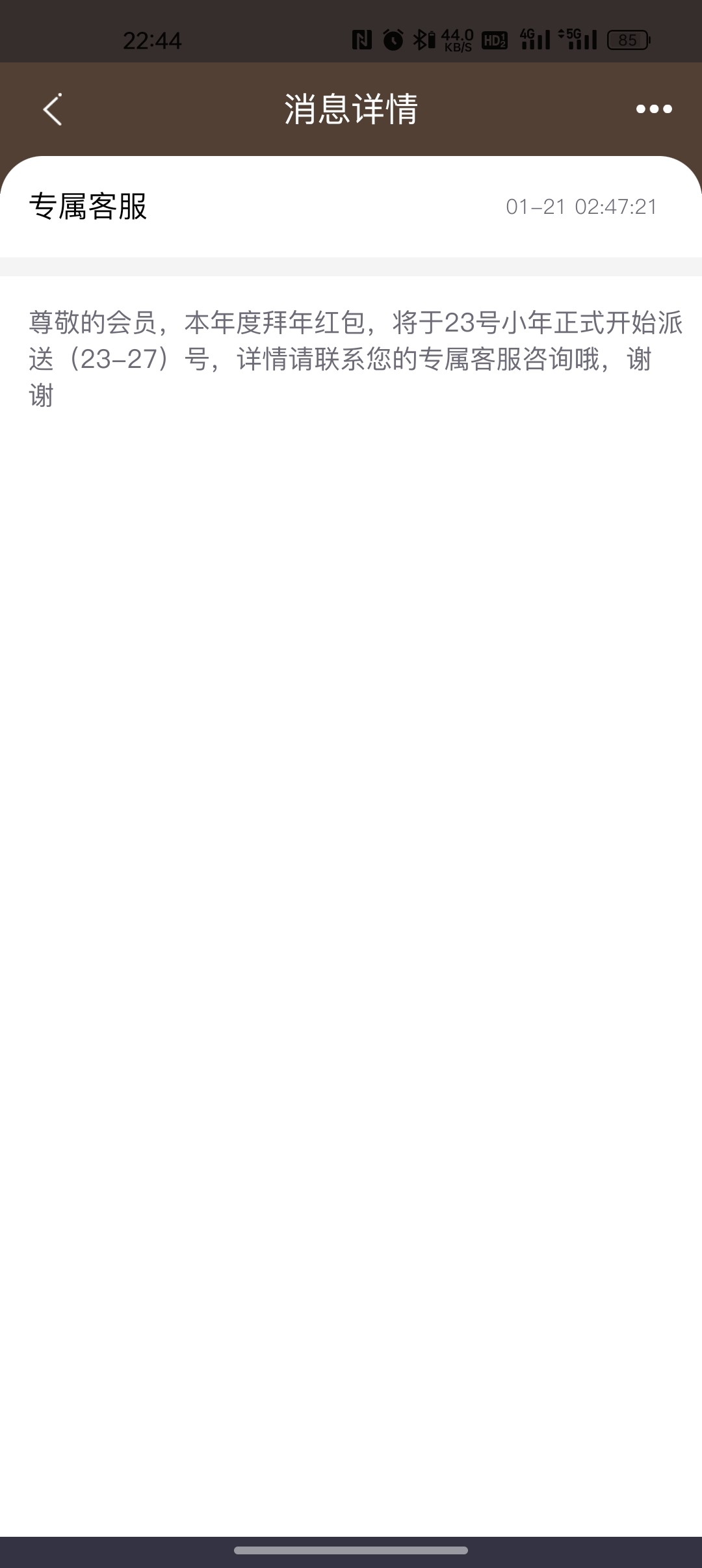 亲,经查询该账号无任何充值记录,没有配置专属客服,不参与专属客服拜年红包活动,谢谢