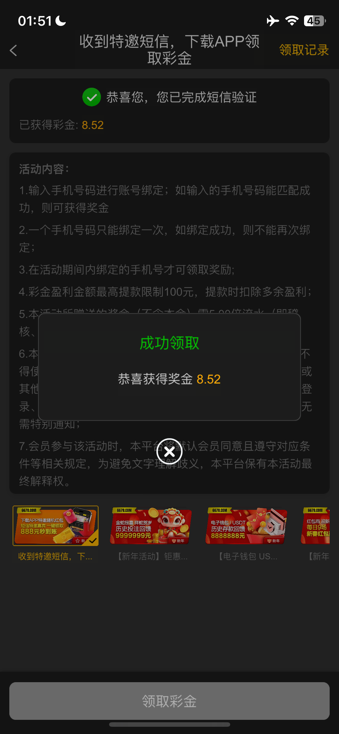对了 这个要下载才显示出来 短信彩金