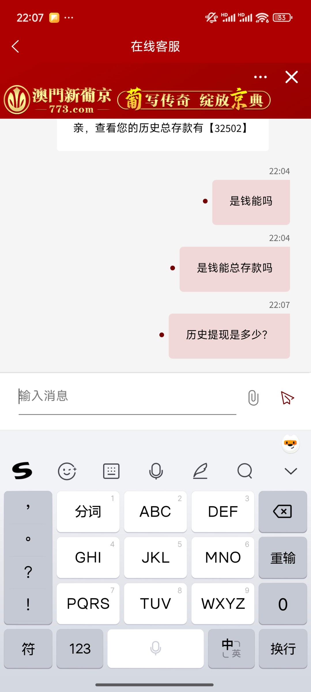 @俺没偷井盖 ,知足吧,没没看到我玩那个平台发出来回哭,历史总存款只计算一年100万还只有188