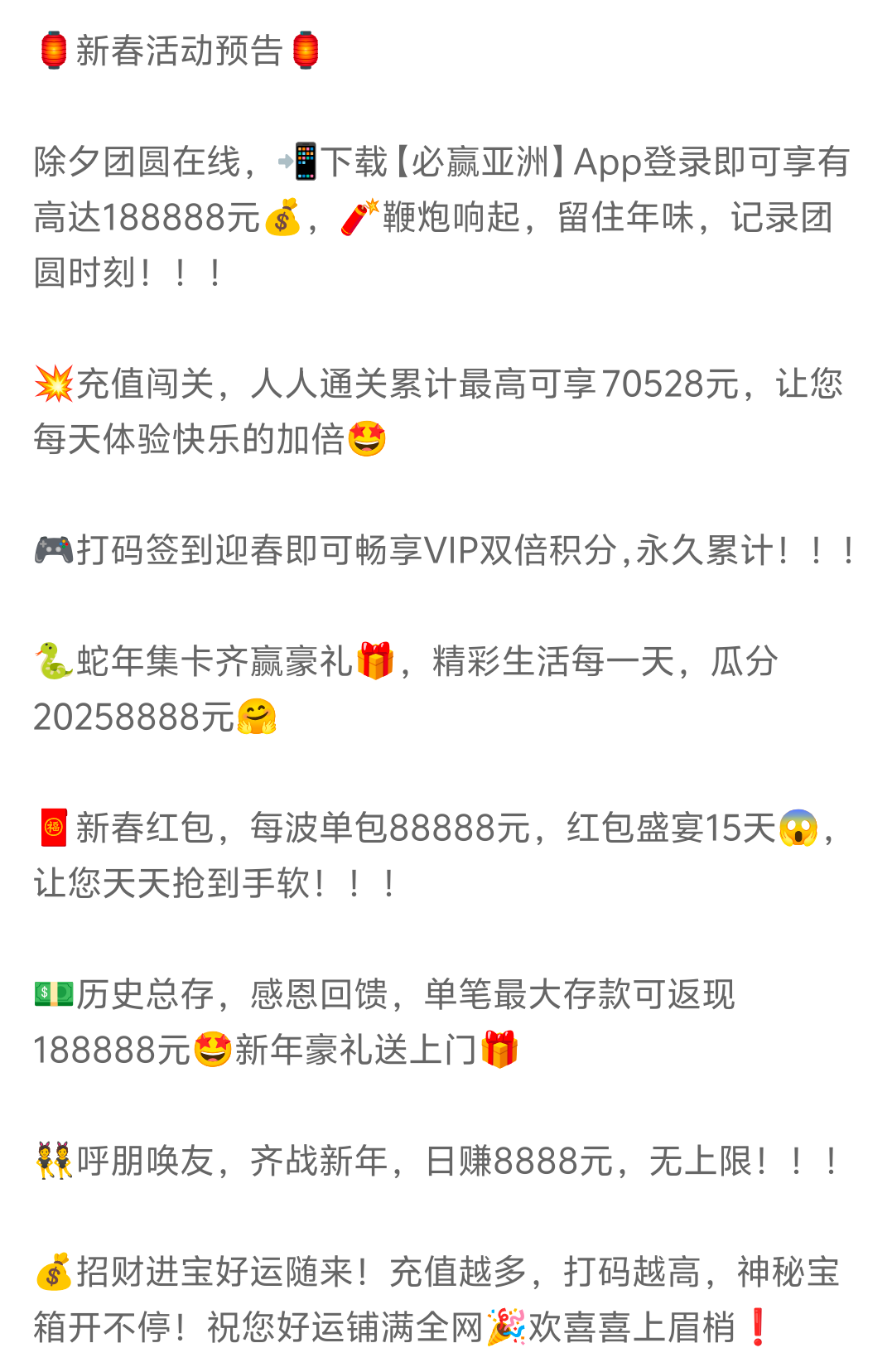 今年是最差的一年 ,除夕9点大红包也没了 注册彩金也没了 单笔最大也没了