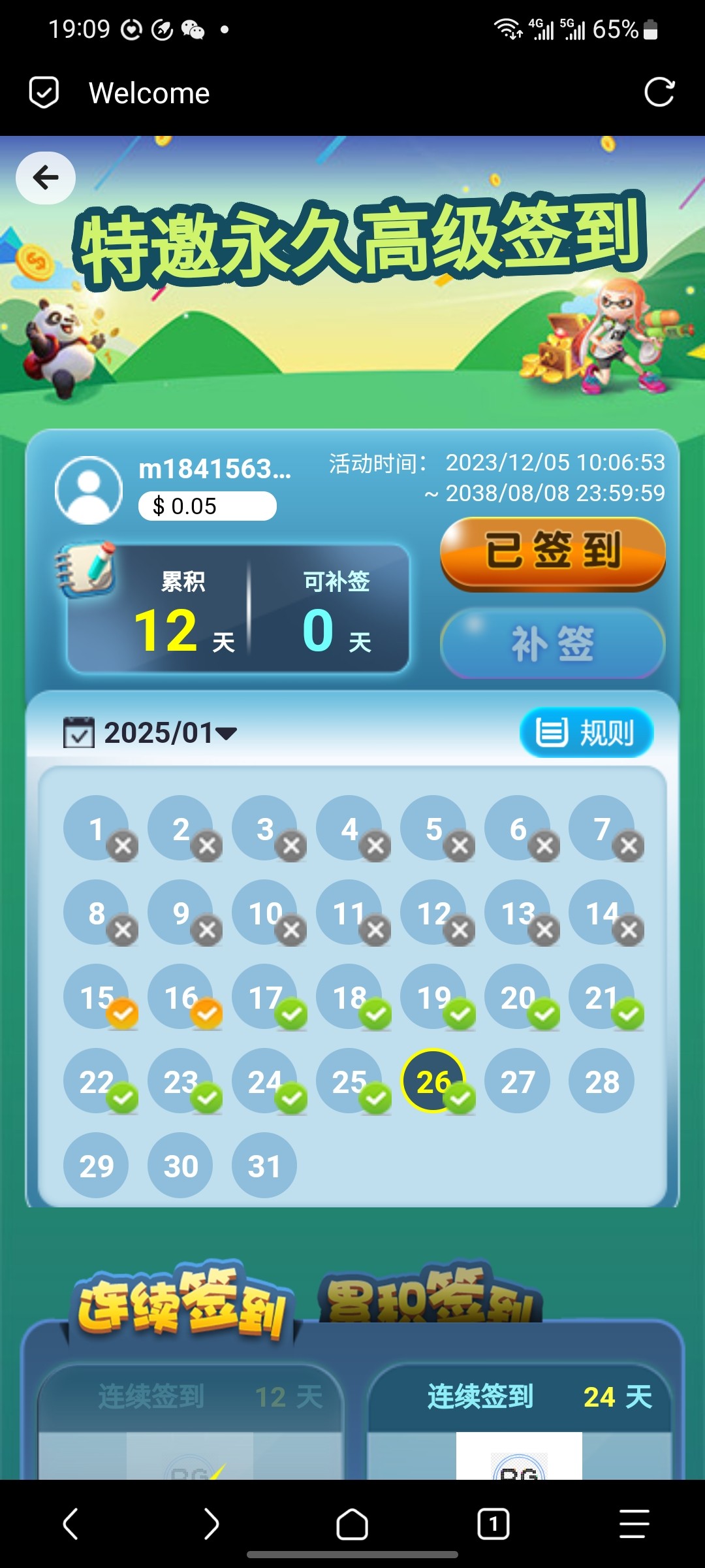 这傻逼台子,充了1000弄的高级签到,天天签到就给一两块,20%的几率天天给