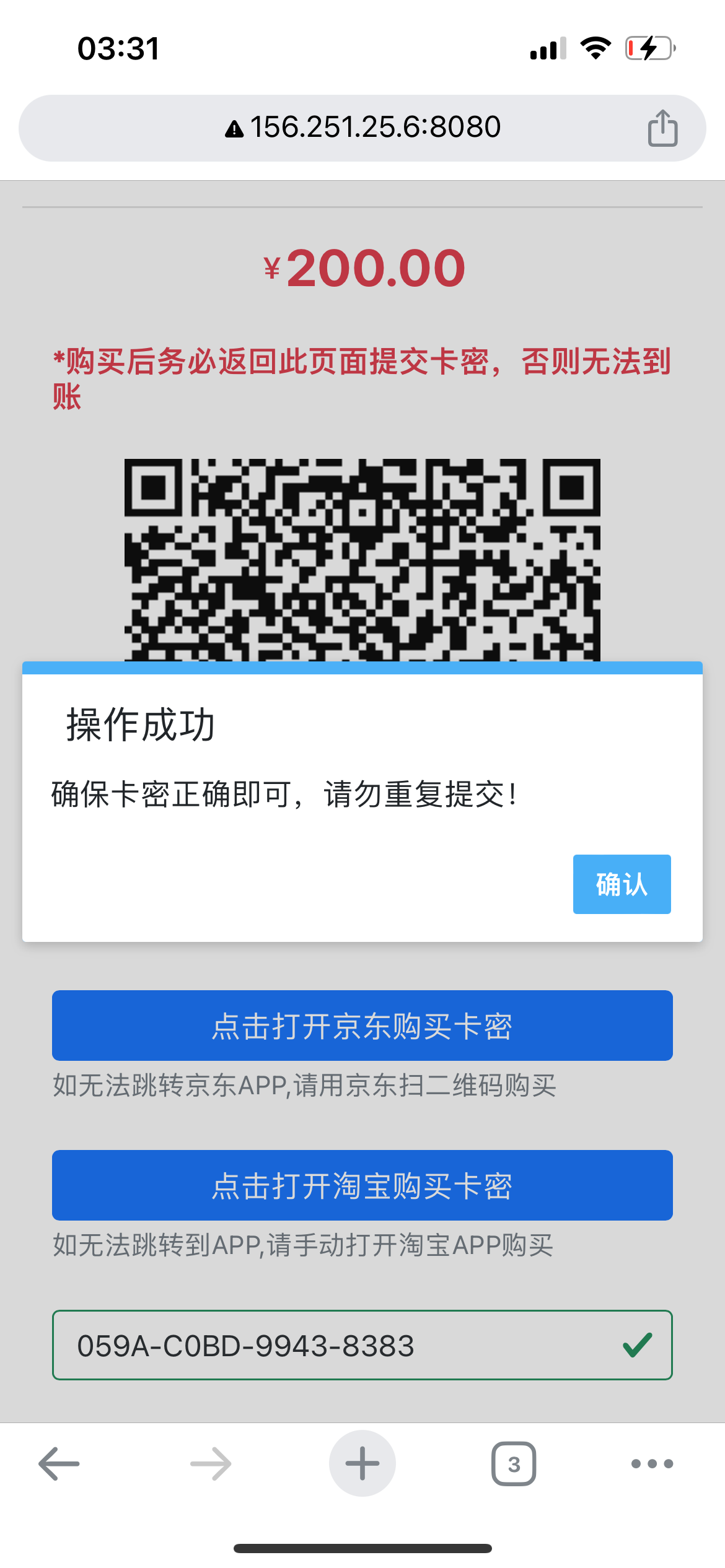 哈哈哈 我之前也黑了我一张 100 京东 但这破台子 可以冲三四块钱 然后提一二百的时候多了去了也没黑 那天不知道为啥就黑逼了 但现在冲提也都ok