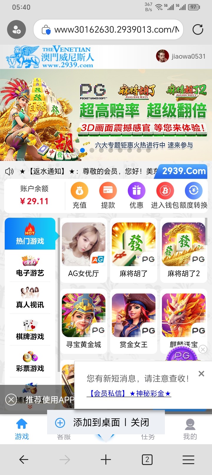 2939有号的可以去看看,以前有充值的还有过年的彩金。2939.com