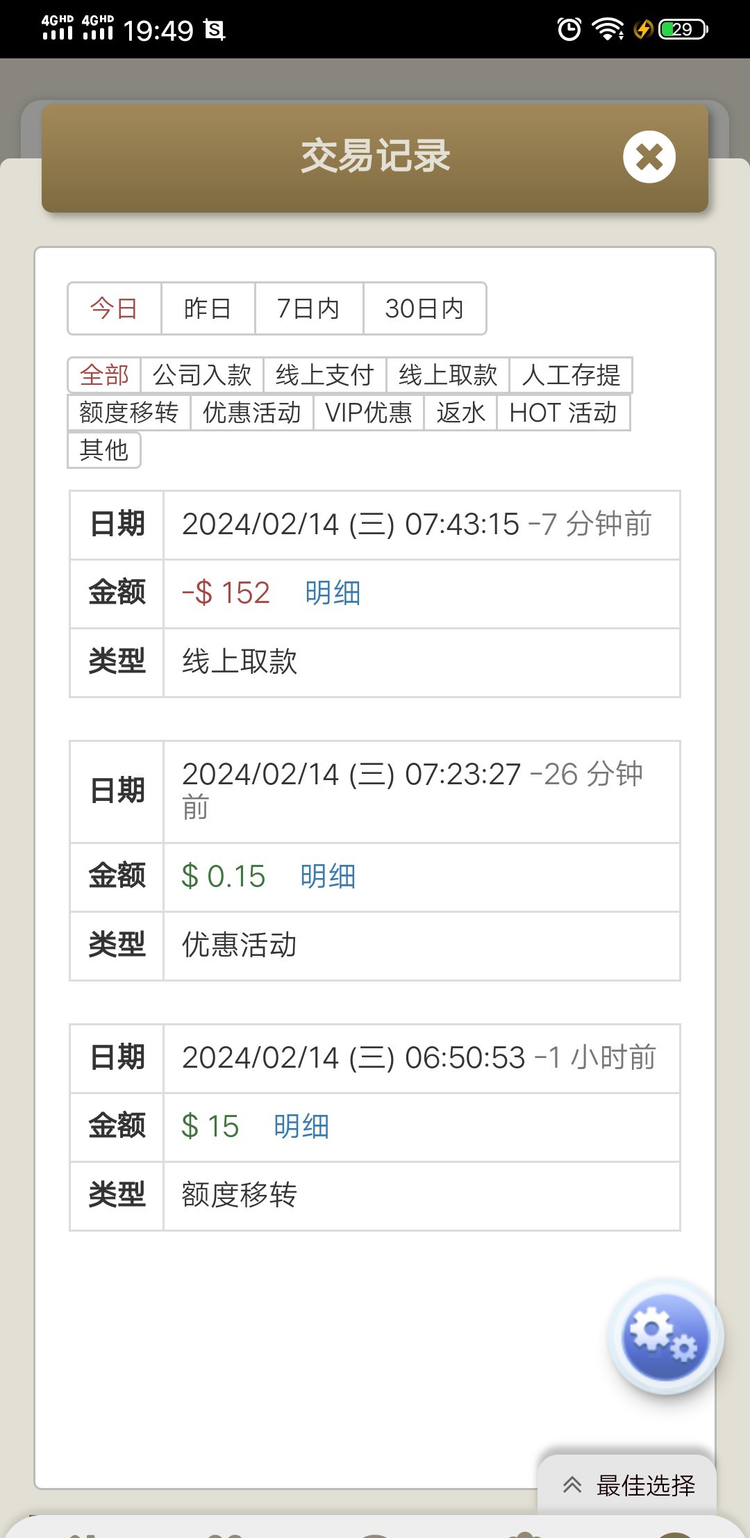 老哥分享彩金15元银河提款152。老哥的彩金就是红红火火