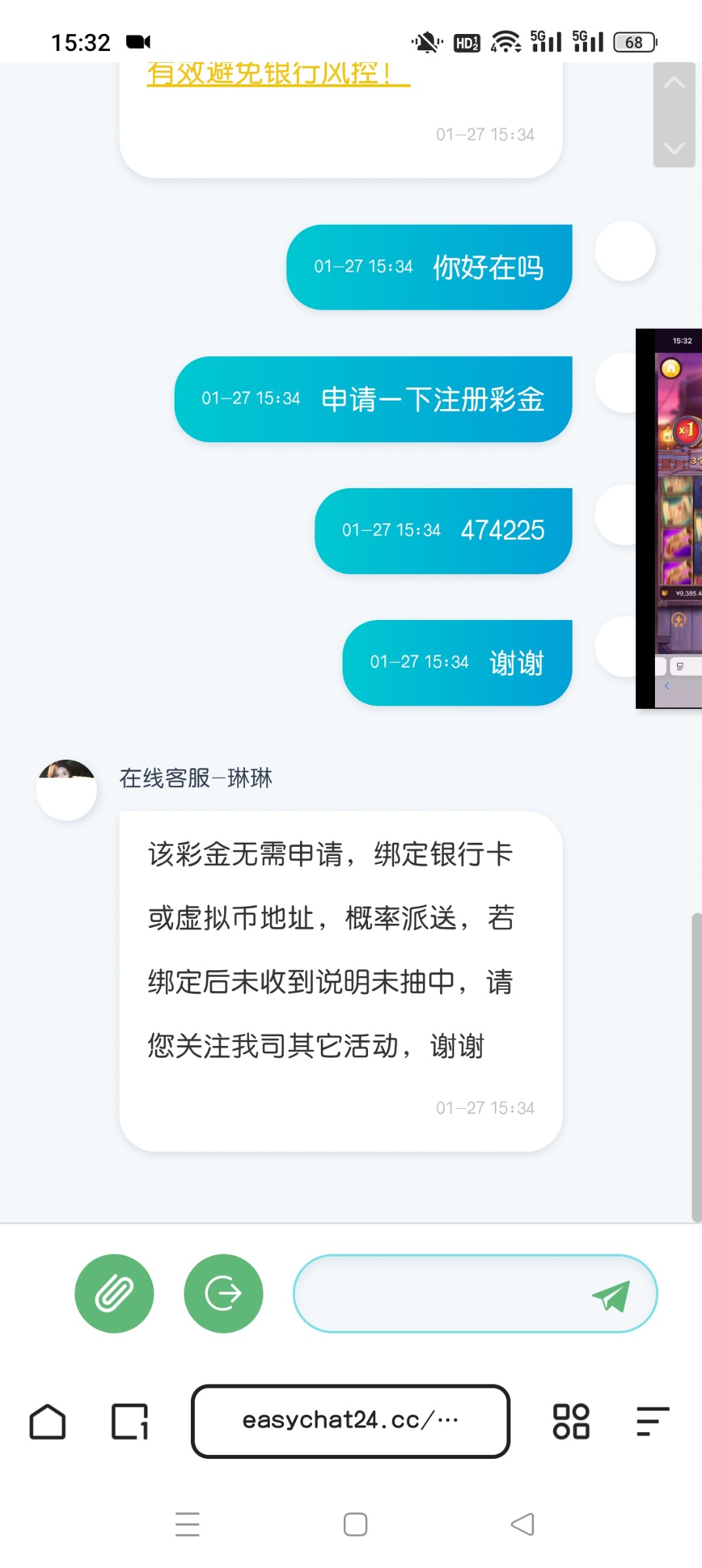 该彩金无需申请,绑定银行卡或虚拟币地址,概率派送,若绑定后未收到说明未抽中,请您关注我司其它活动,谢谢