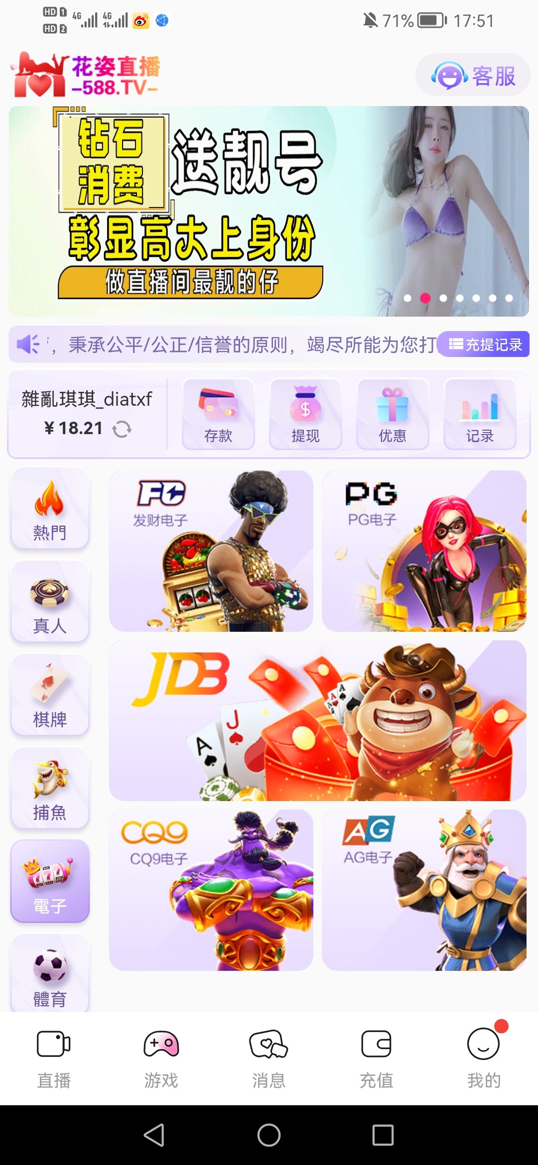 花姿直播刚刚接到电话,跟客服说新春彩金,领取了18。我没打出来。可以去试试碰瓷一下。网址86256.app。