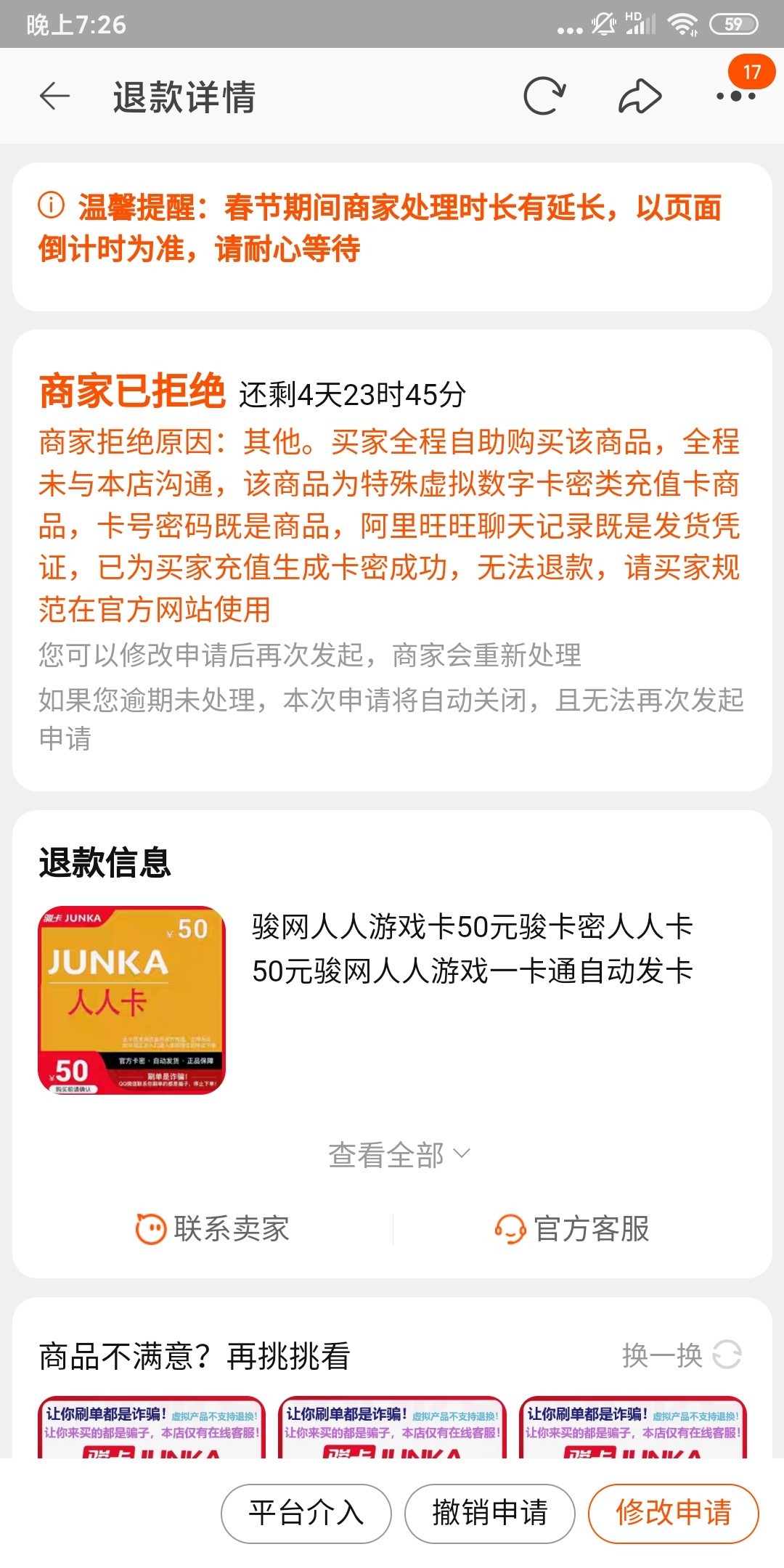 没有办法了退款也不行只能找台子了