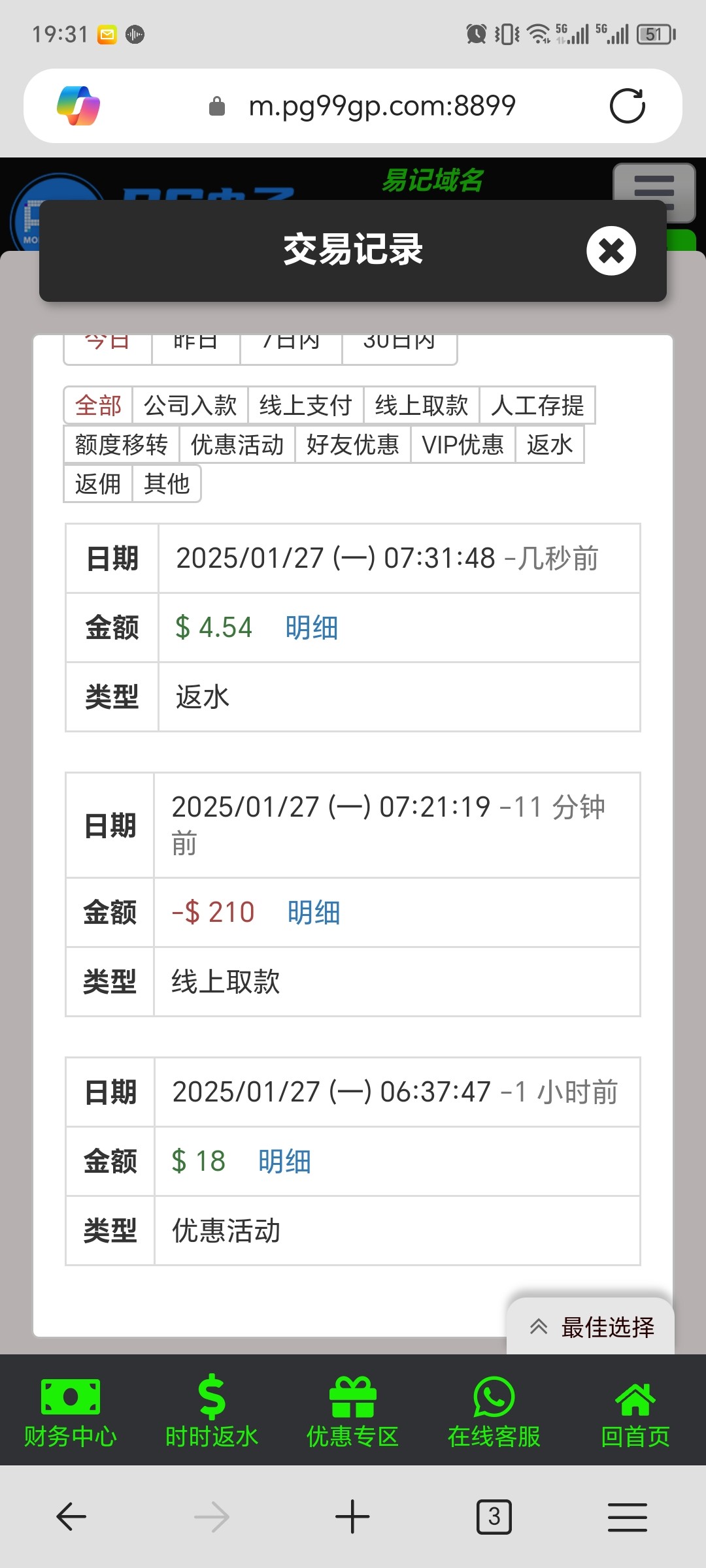 电话打来的,回访18提了210秒到,登录就有,漏接电话的登录看看,没领到不要骂人!!!电话给的网站 4563.cc