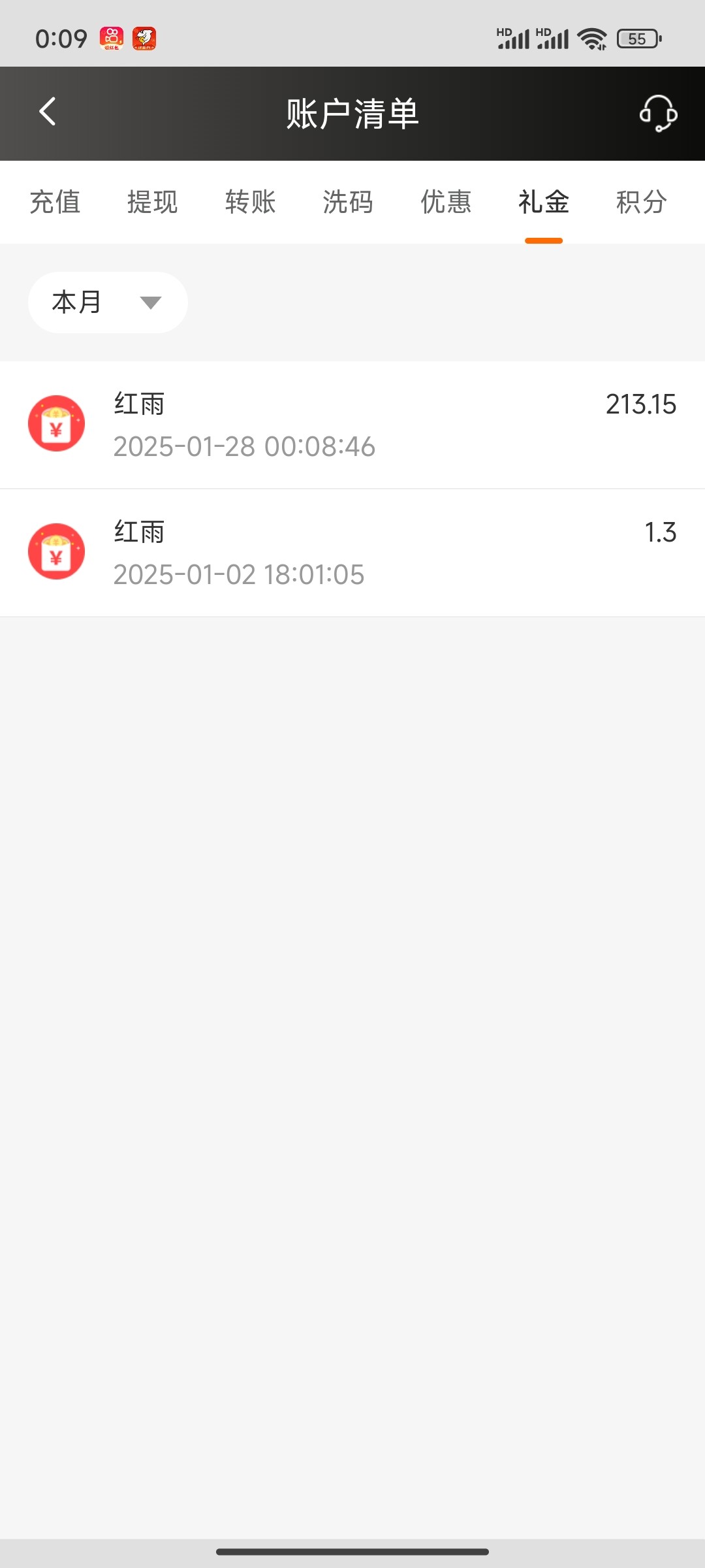 没有 输了几k的号都没有红包雨
