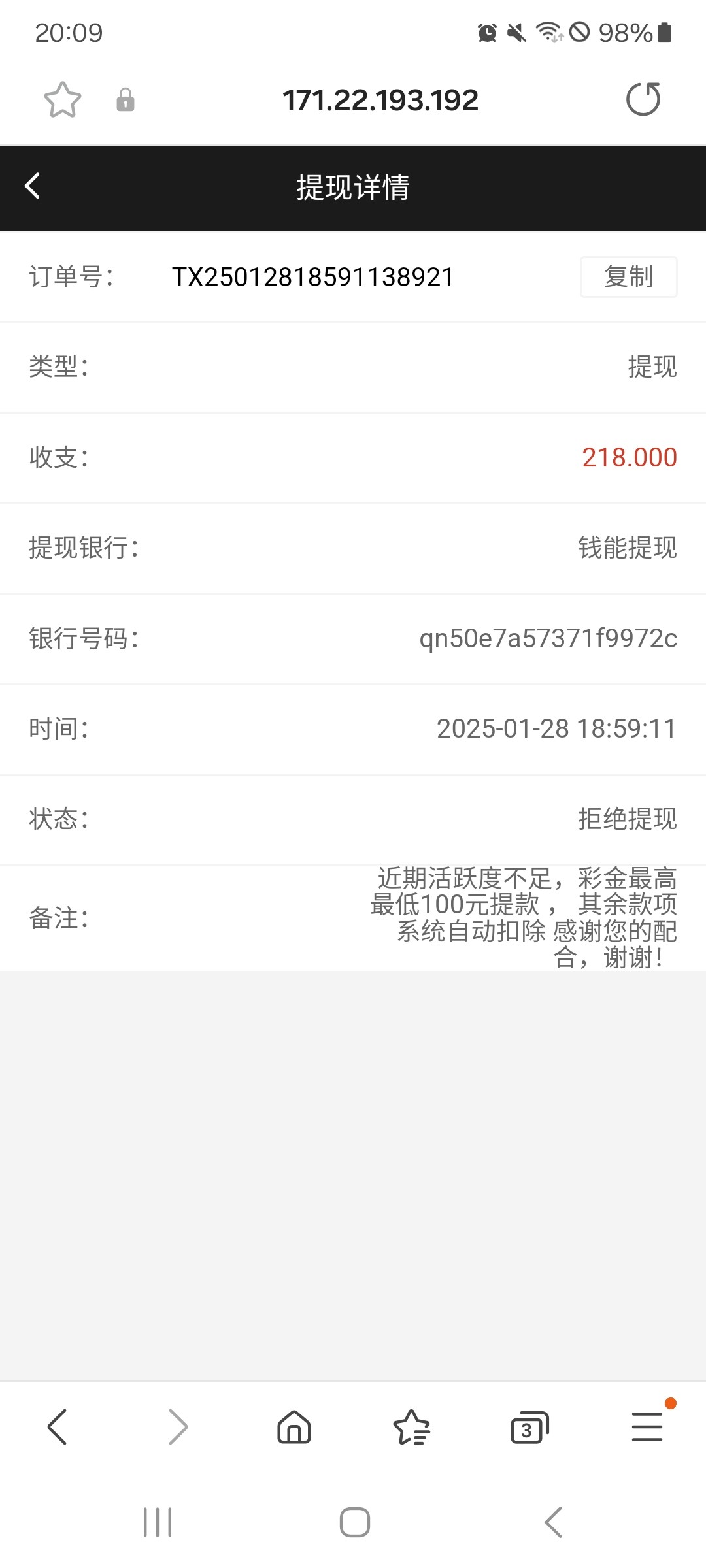 垃圾,上个月给我账号封了v3,5000单笔一直不发去问客服过了两天账号冻结了