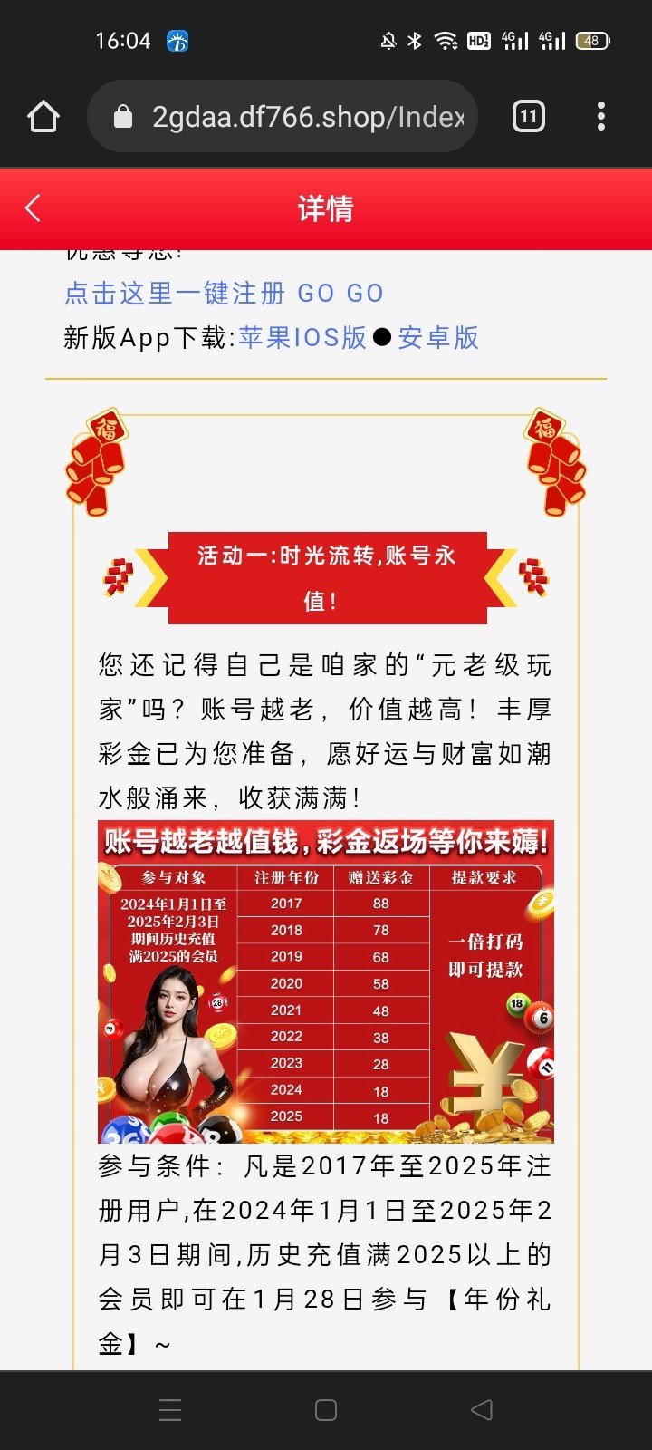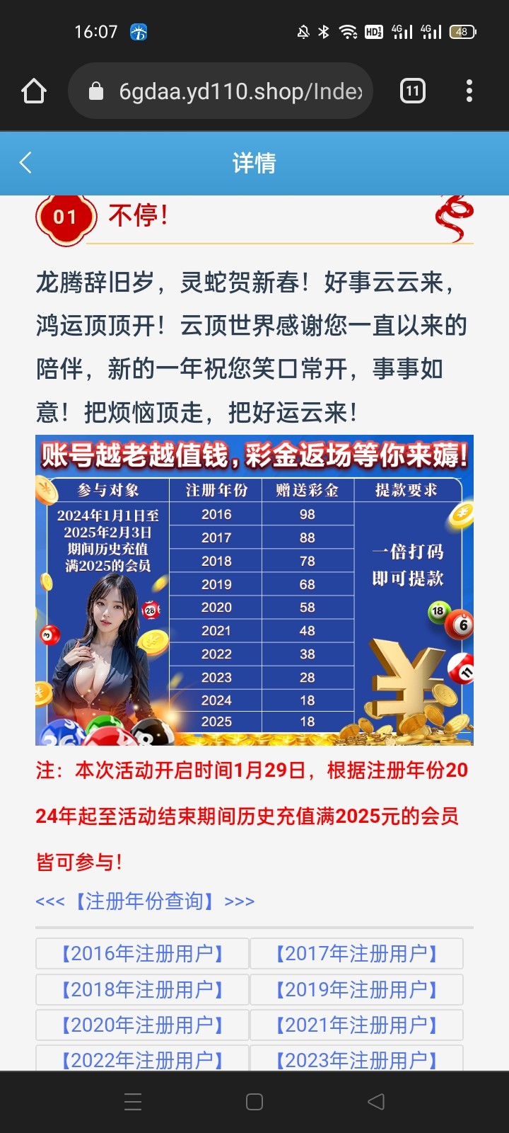 这系列的年份礼金账号越老红包越大,2024年1月1号到现在充值满2025就可以去领 地址 7998v45.com,6044z5.com,9887003.com,4966777.com,9494123.com