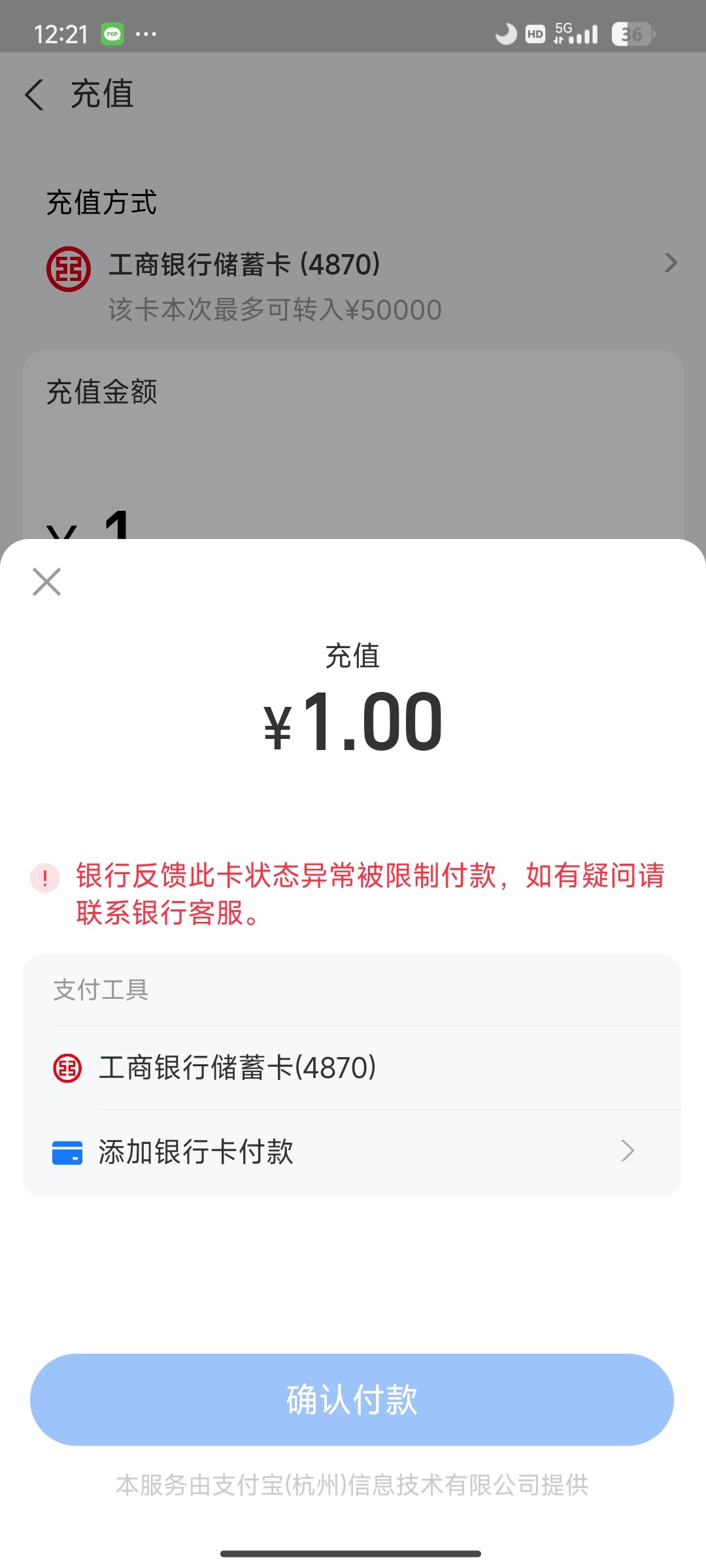 前面被限制了,只能收不能付,要去银行,我打勾的没敢去,今天突然可以用了