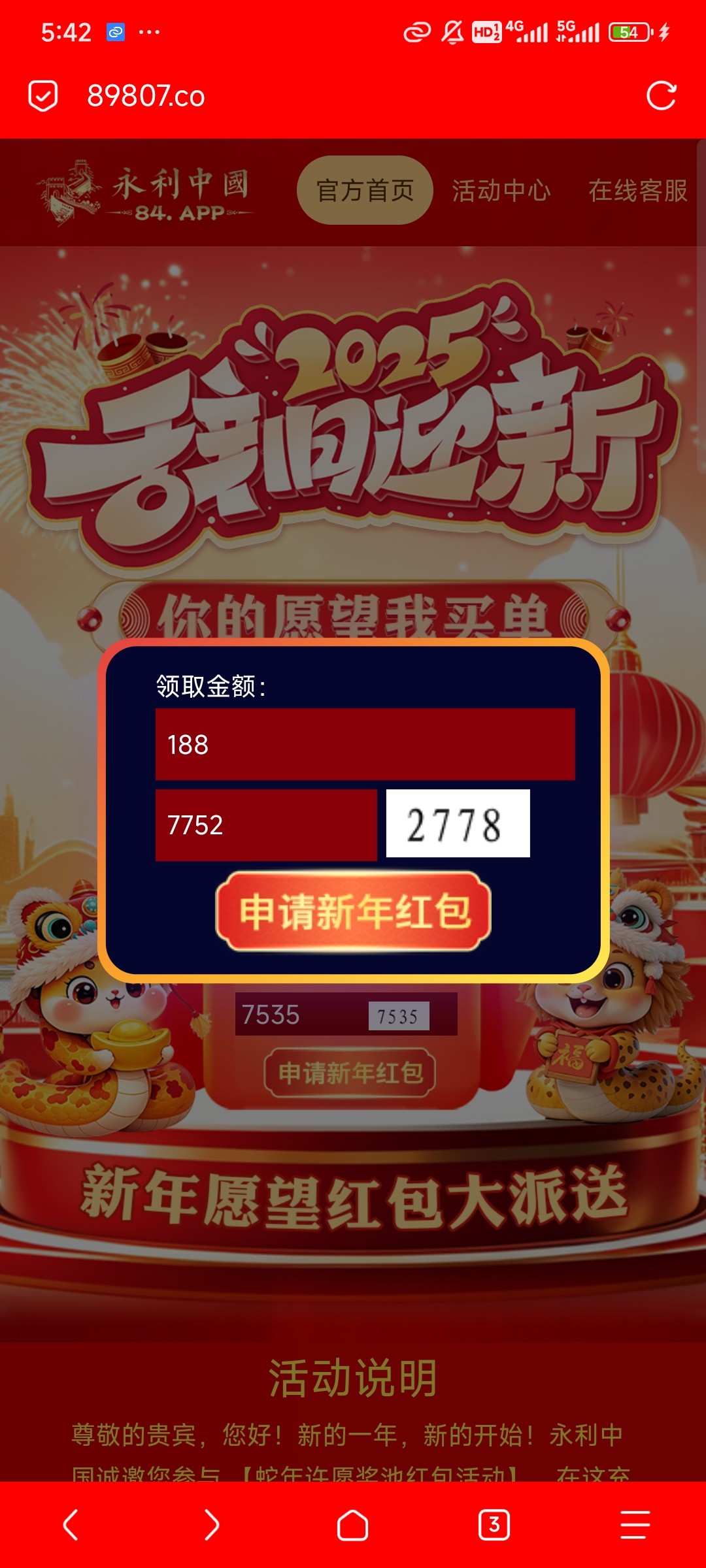 历史充值1000➕的去综合活动里 蛇年红包大派送去申请 我历史充值2k➕ 显示可以申请188 不知道能不能到 2.1号派发84.app