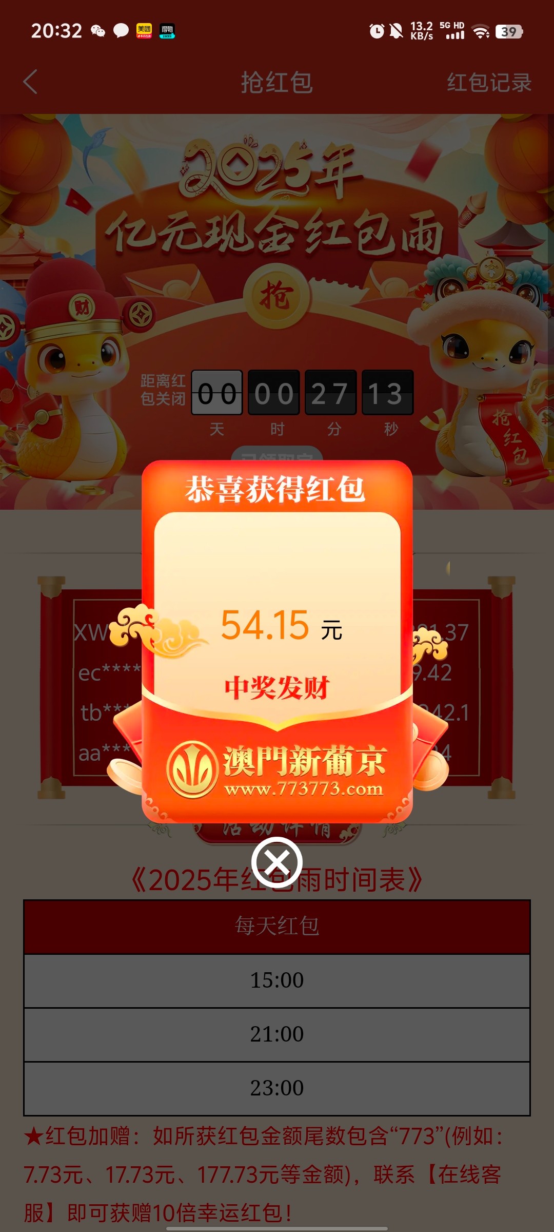 773红包v1就抢这么多,但是输了有一两万了