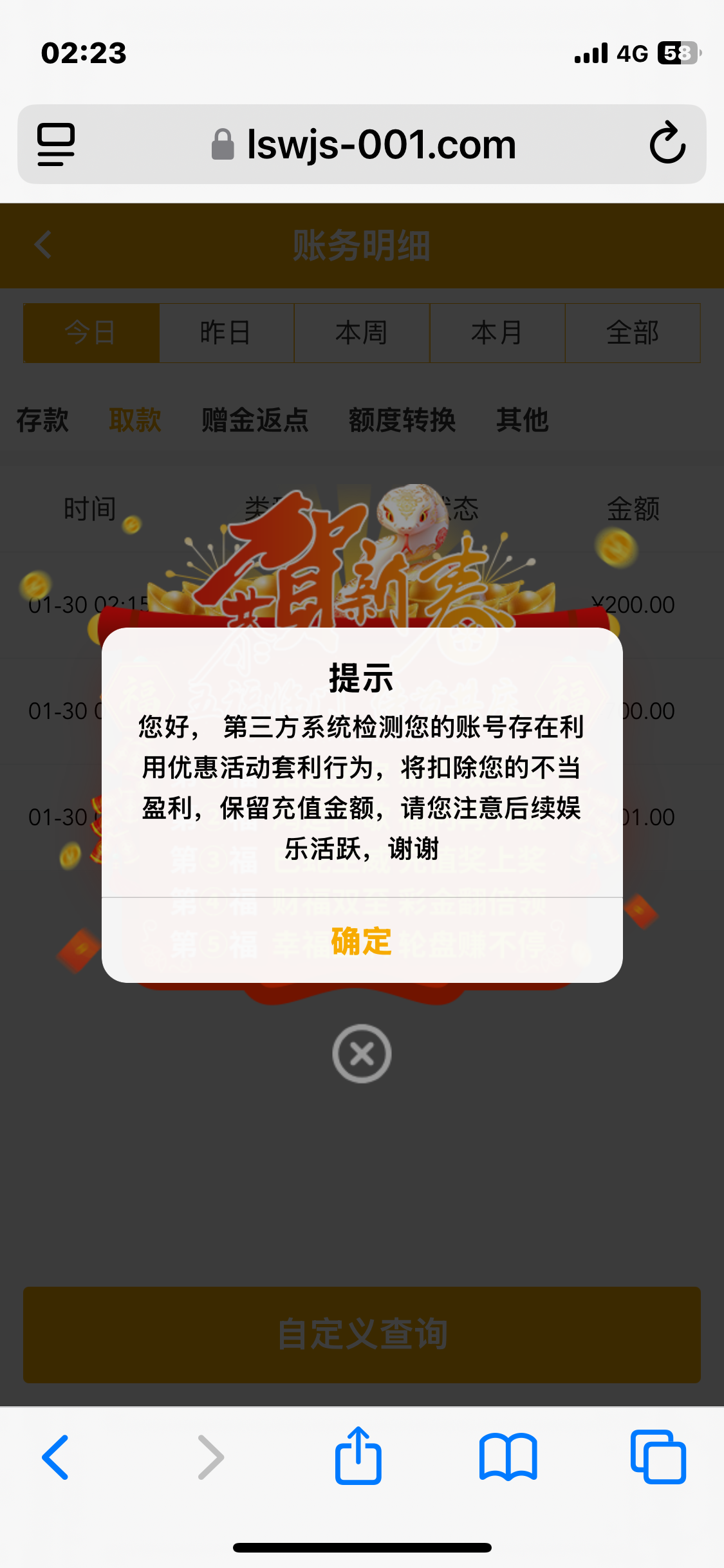 送的8块钱打上500,说提款要充值活跃,冲了一百上去一直打打了2000的流水,也到了700,一点提款秒拒绝!理由经典套利!然后说保留本金,我直接去真人过关了出200都不给还给我扣了100真的666!wctm真的现在黑台都那么多了嘛?送的起出不起!出不起那你为什么要送!有没有相同被黑的老哥。