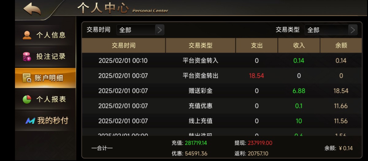 这台子还行吧靠以小博大活动2024年快撸了快两万,之前都是负战绩现在都快让我赢了一万多,每天就只充20块。每天红包差不多可以抢30每天白嫖美滋滋