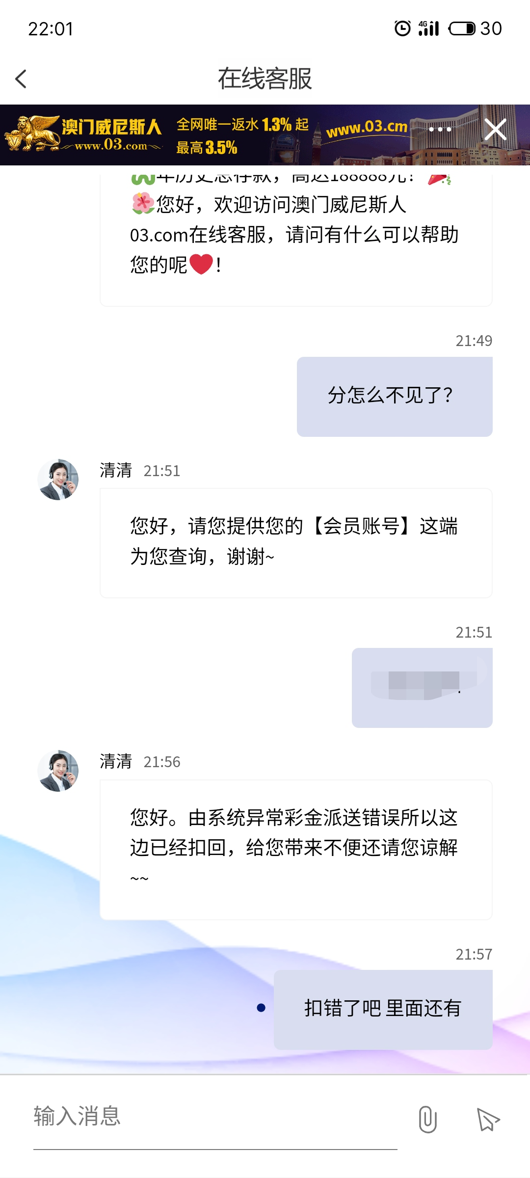 以为春节活动中大奖了,还没得提出勾庄就扣了,心凉