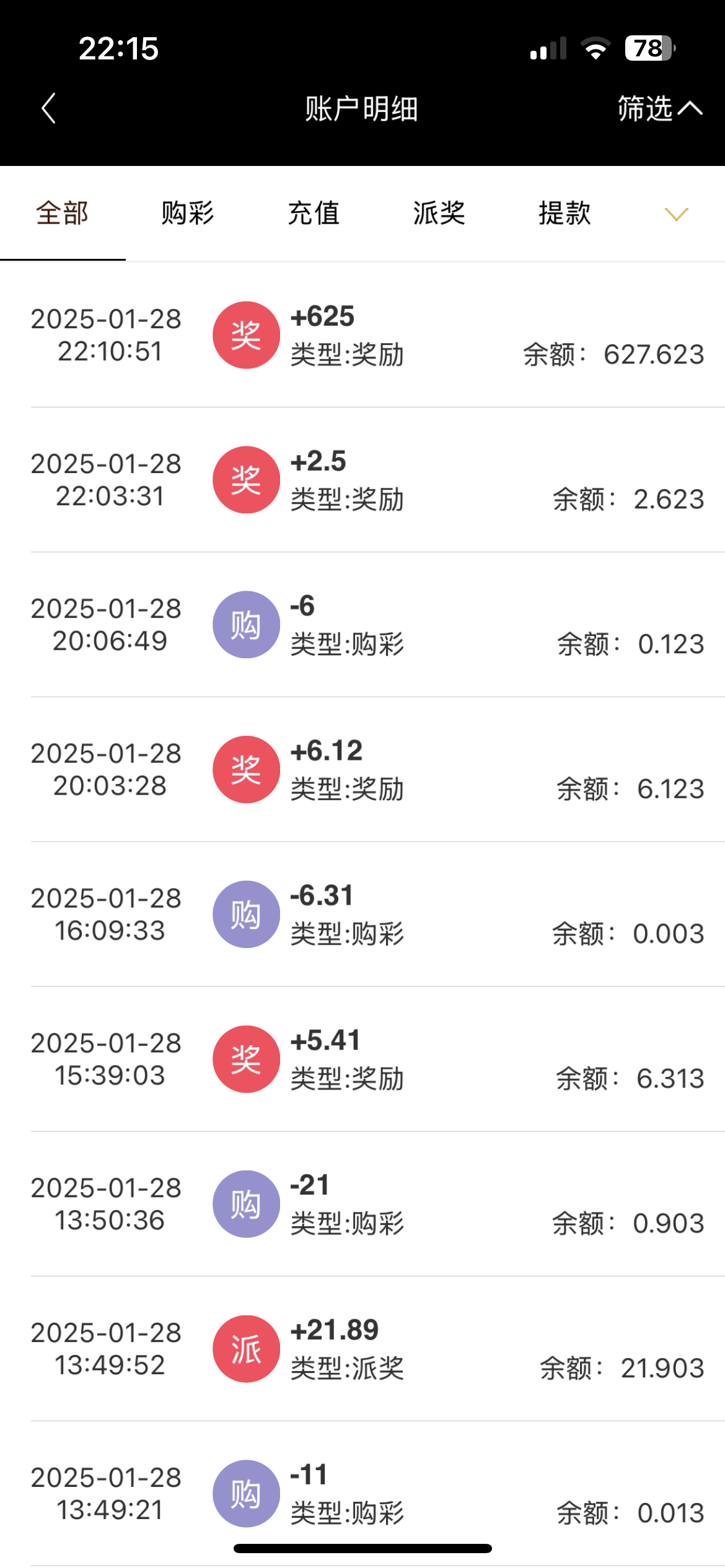 4个号都没领到25,就领了几个7块8块带8尾的10倍
