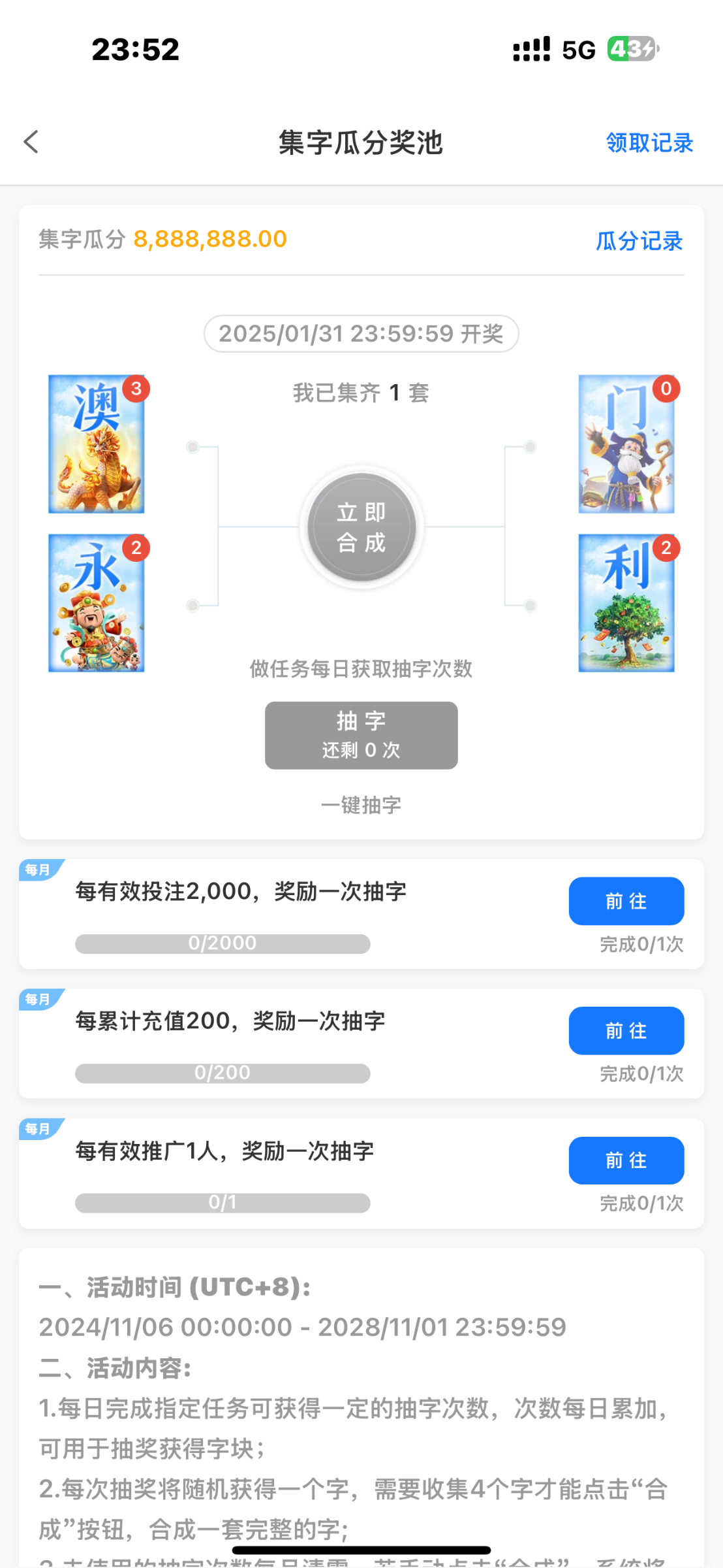 奖池才8w 。有一块都不错了,03网奖池8千万,还难集齐,一套估计几个w